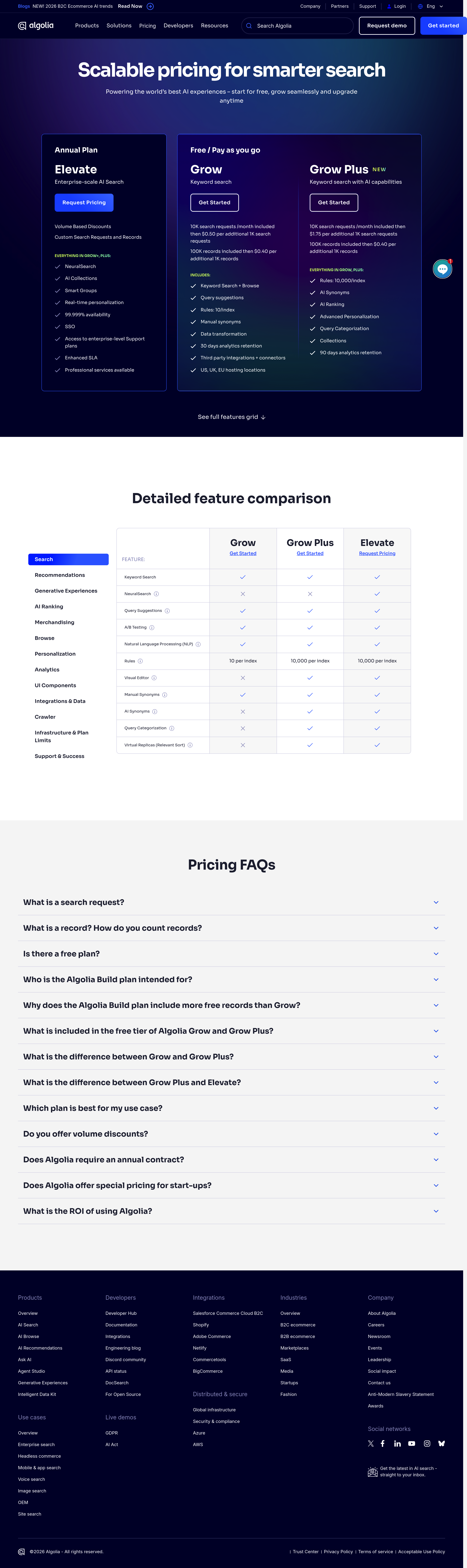 Algolia Pricing Page