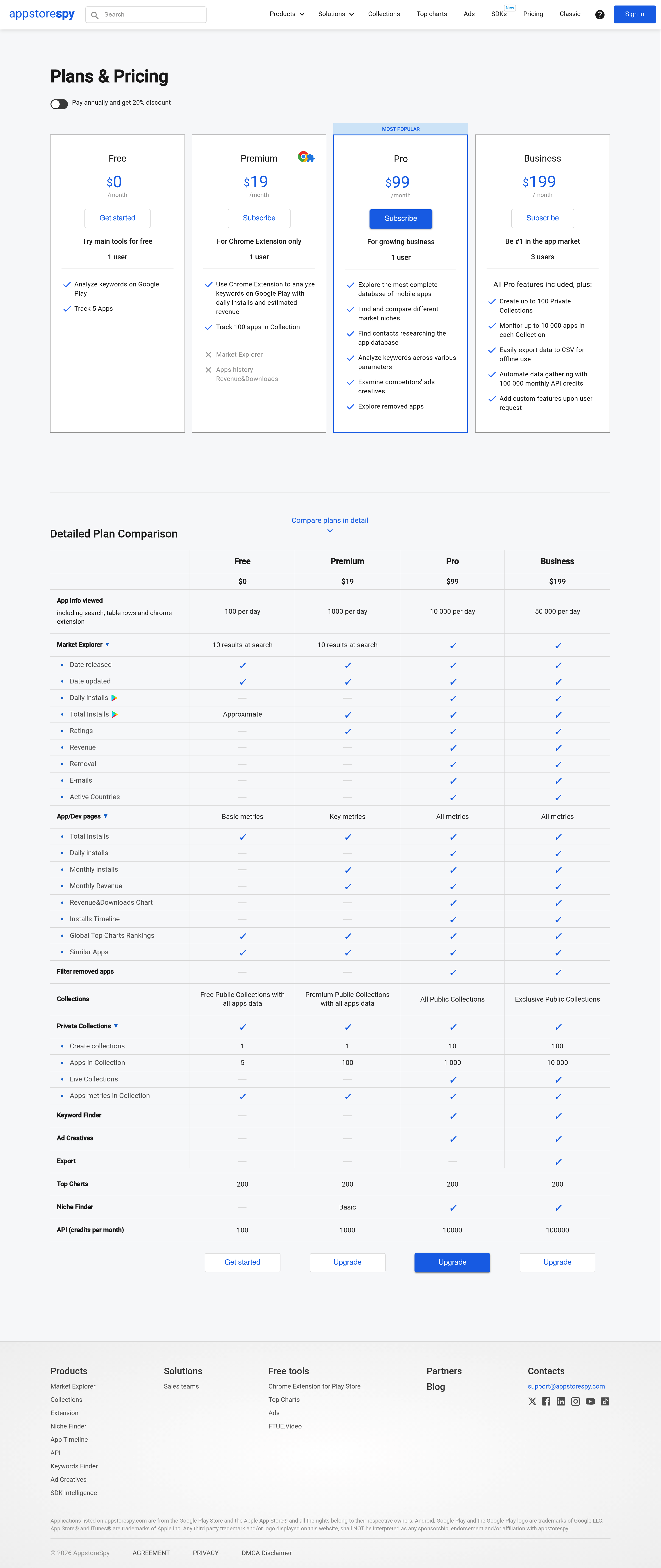 AppstoreSpy Pricing Page