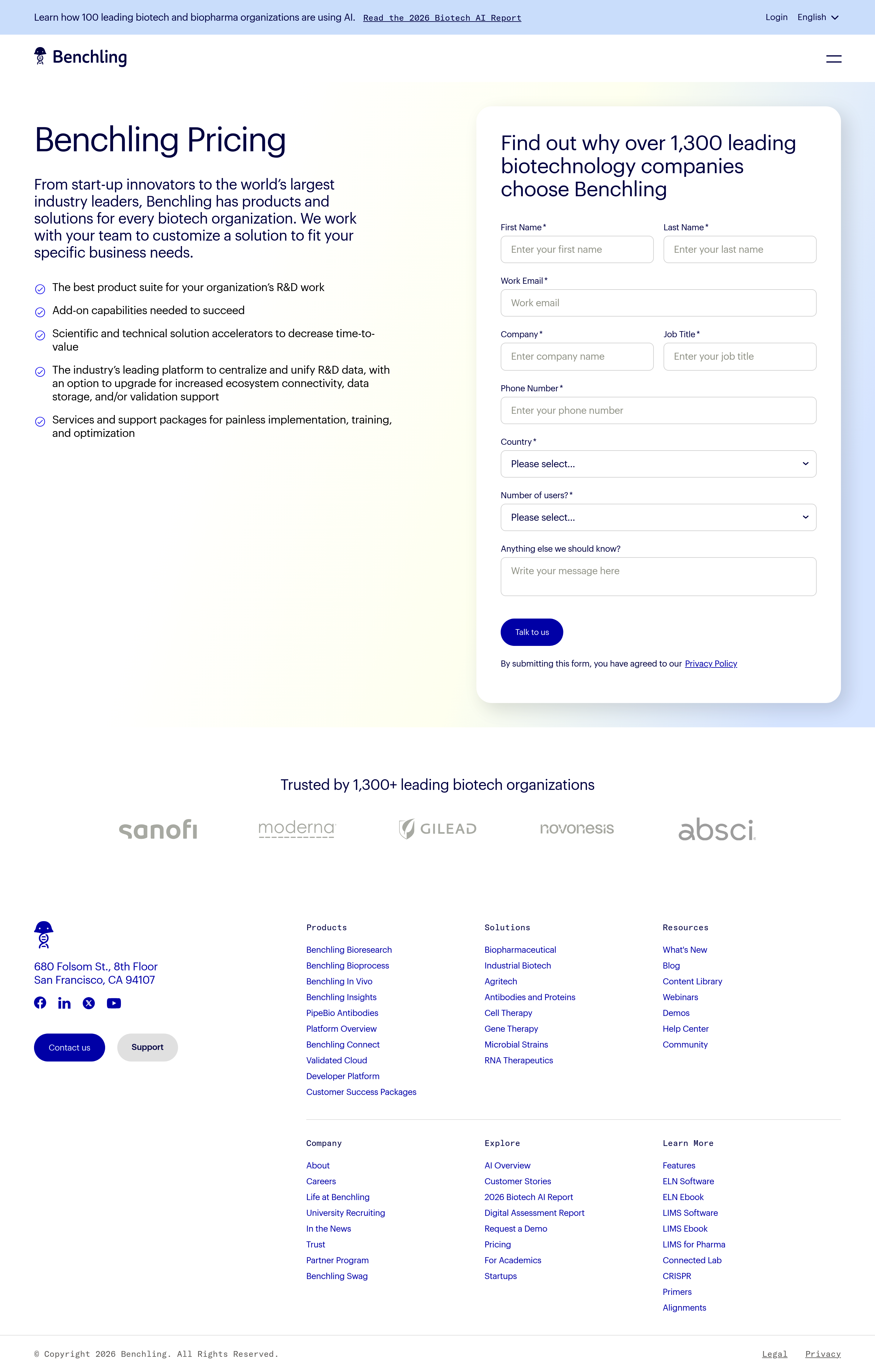Benchling Pricing Page