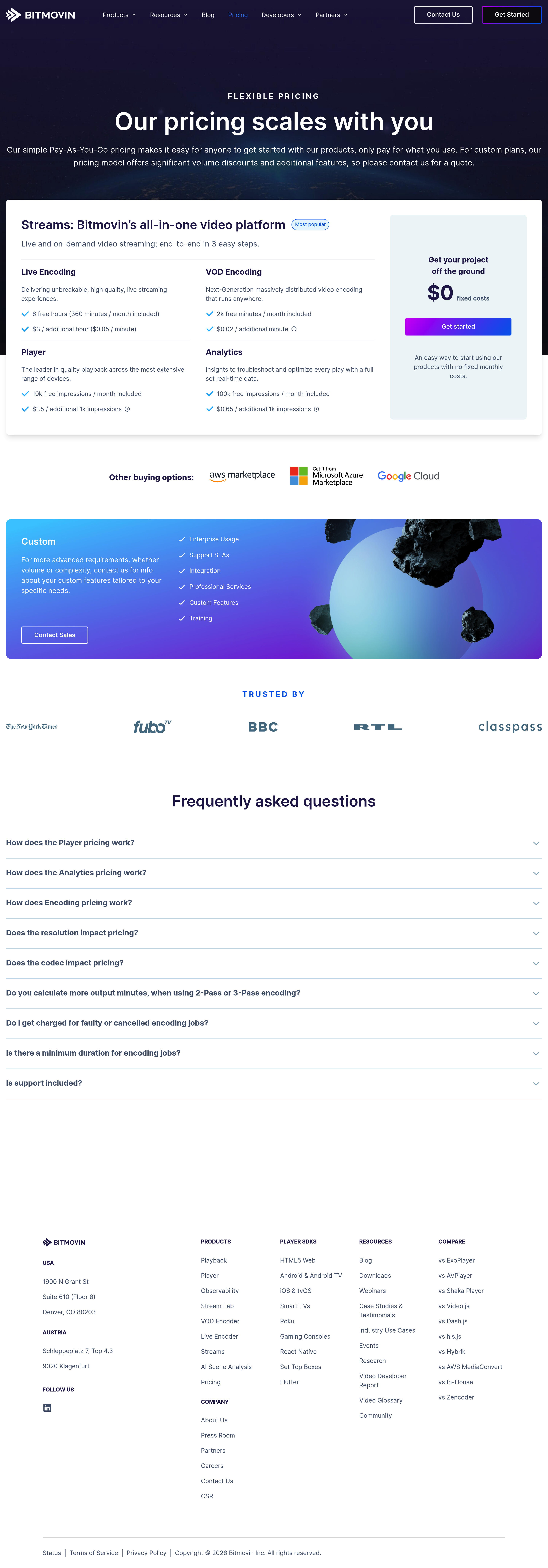 Bitmovin Pricing Page