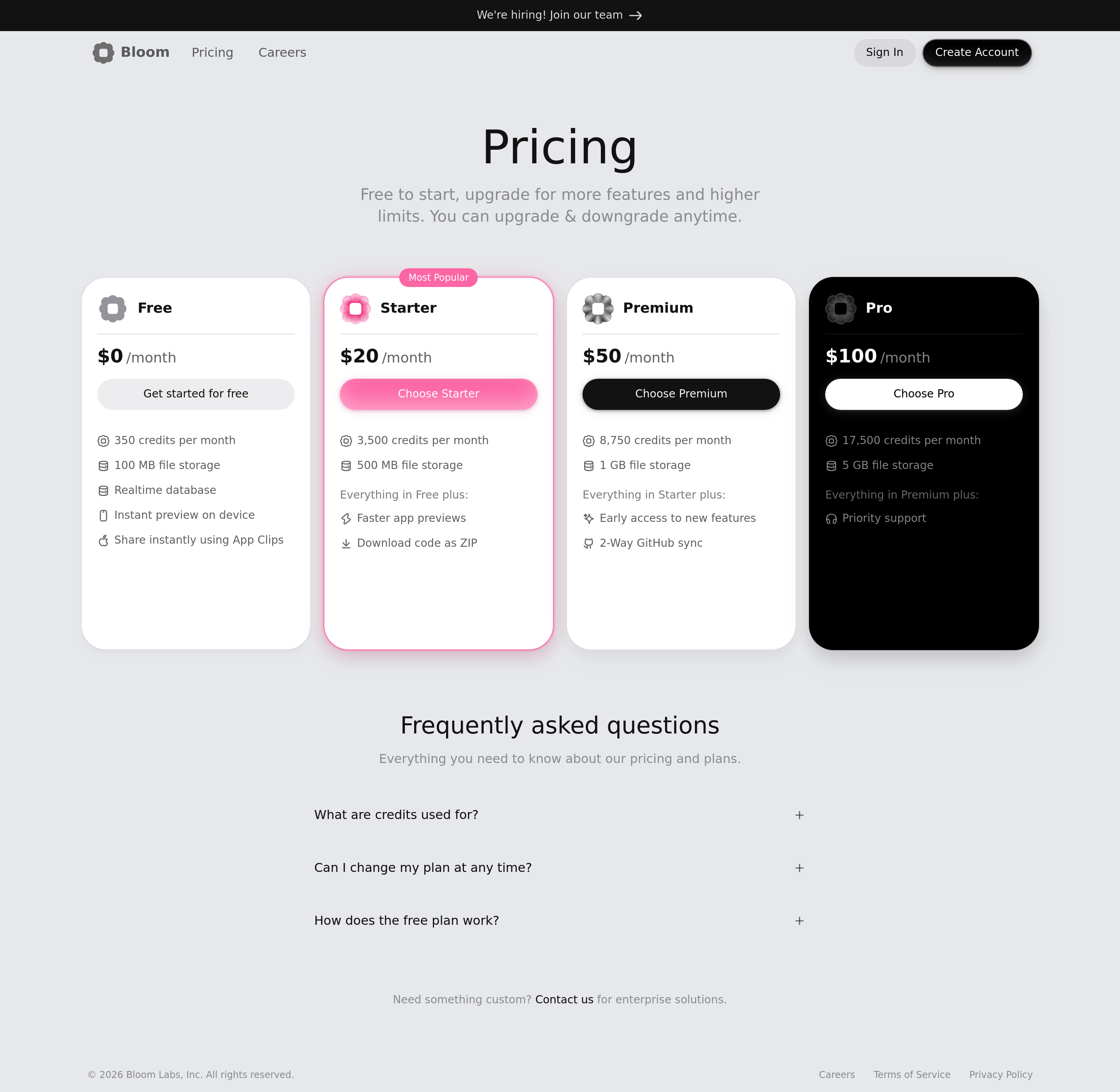 Bloom Pricing Page