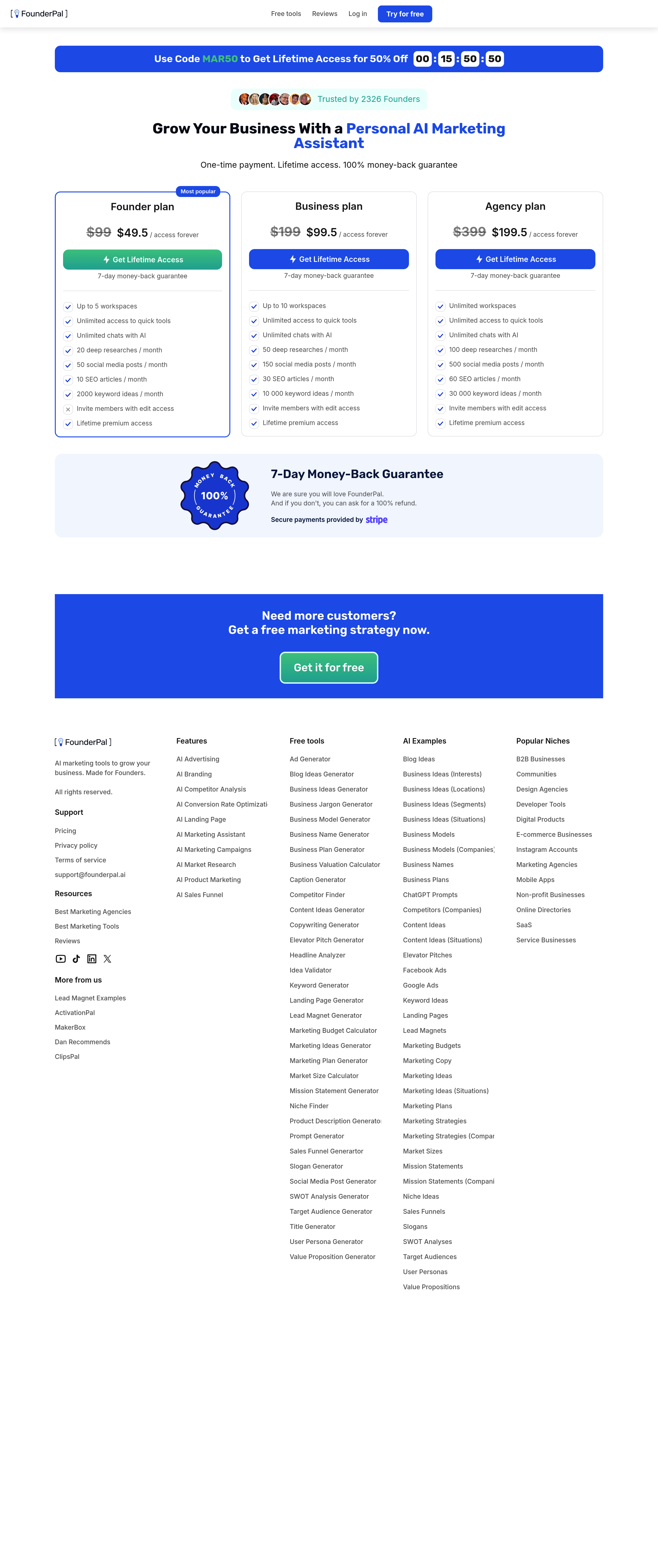 Business Idea Generator Pricing Page