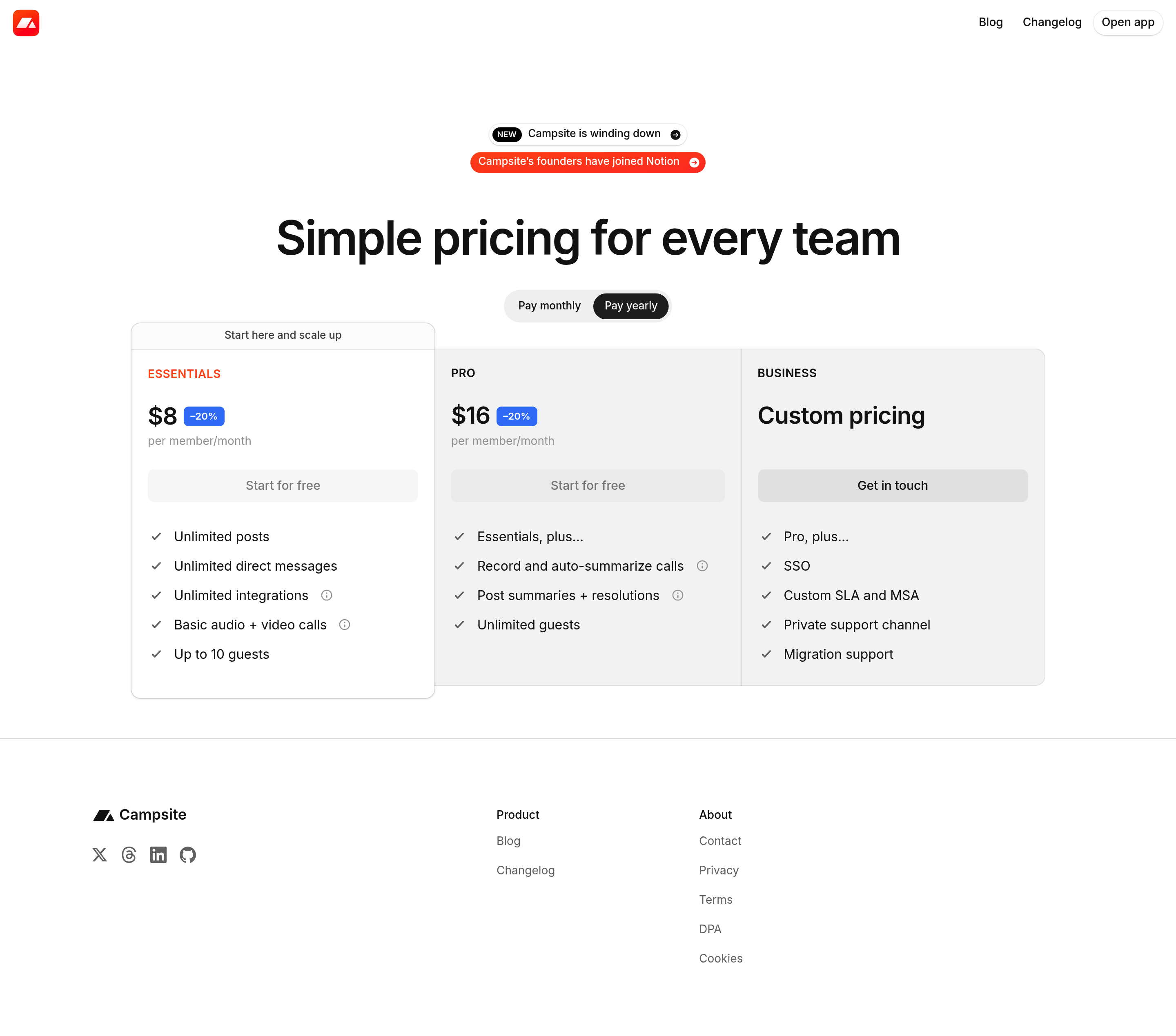 Campsite Pricing Page