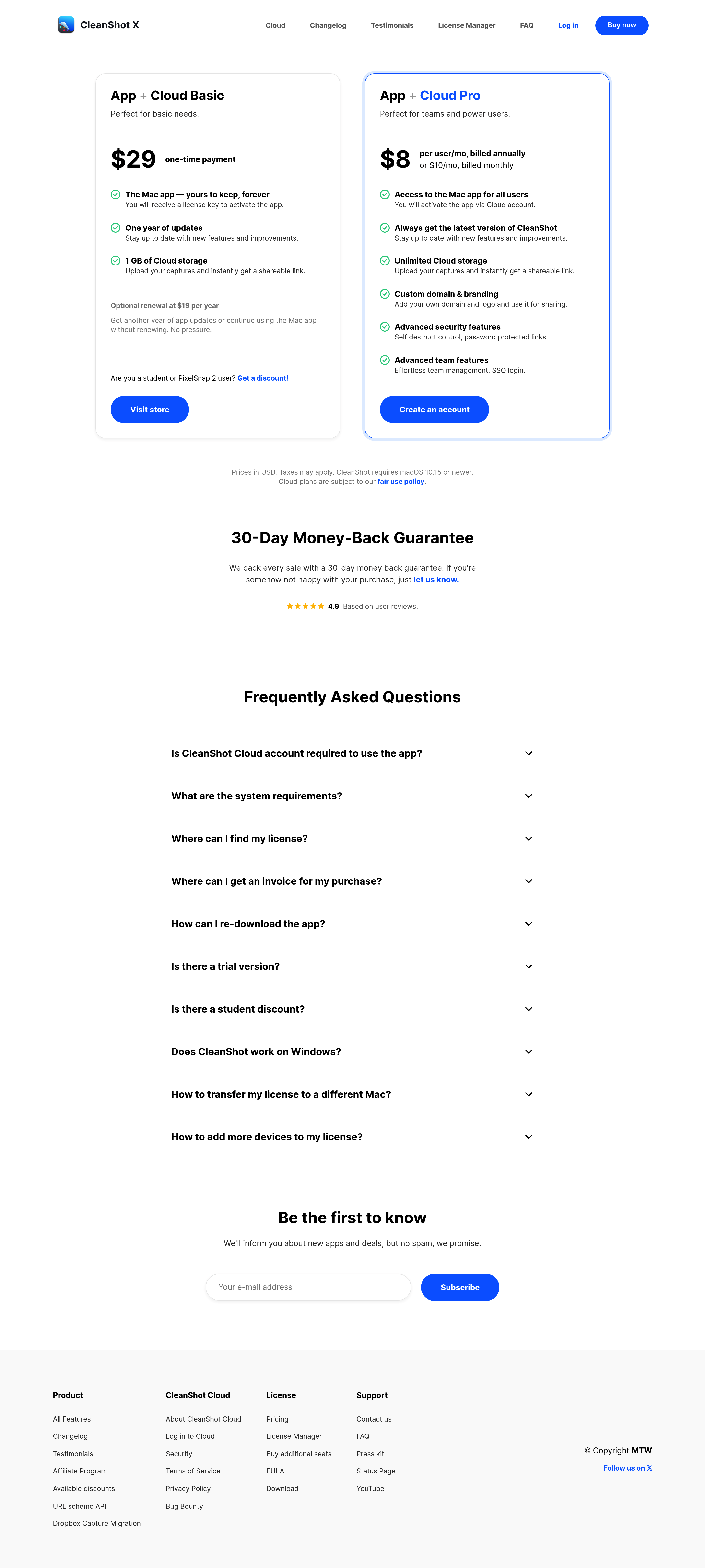 CleanShot X Pricing Page