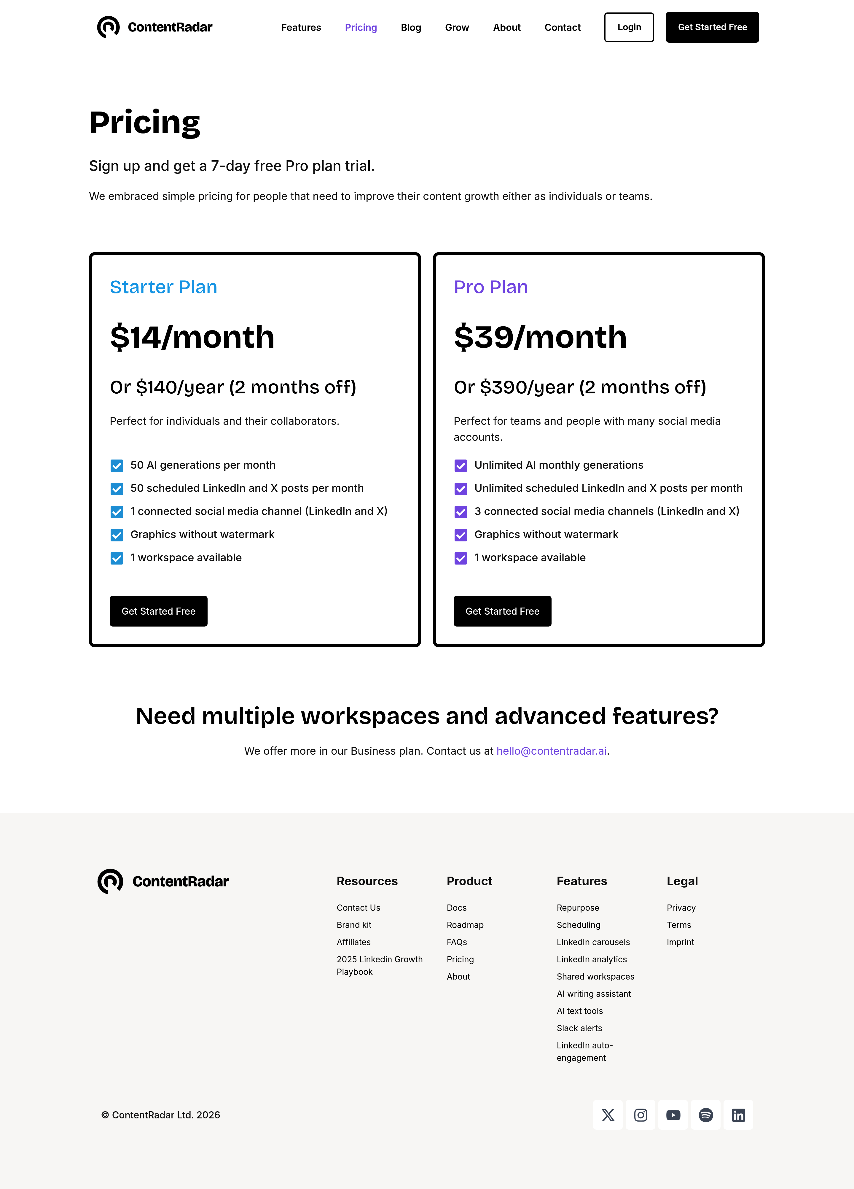 ContentRadar Pricing Page