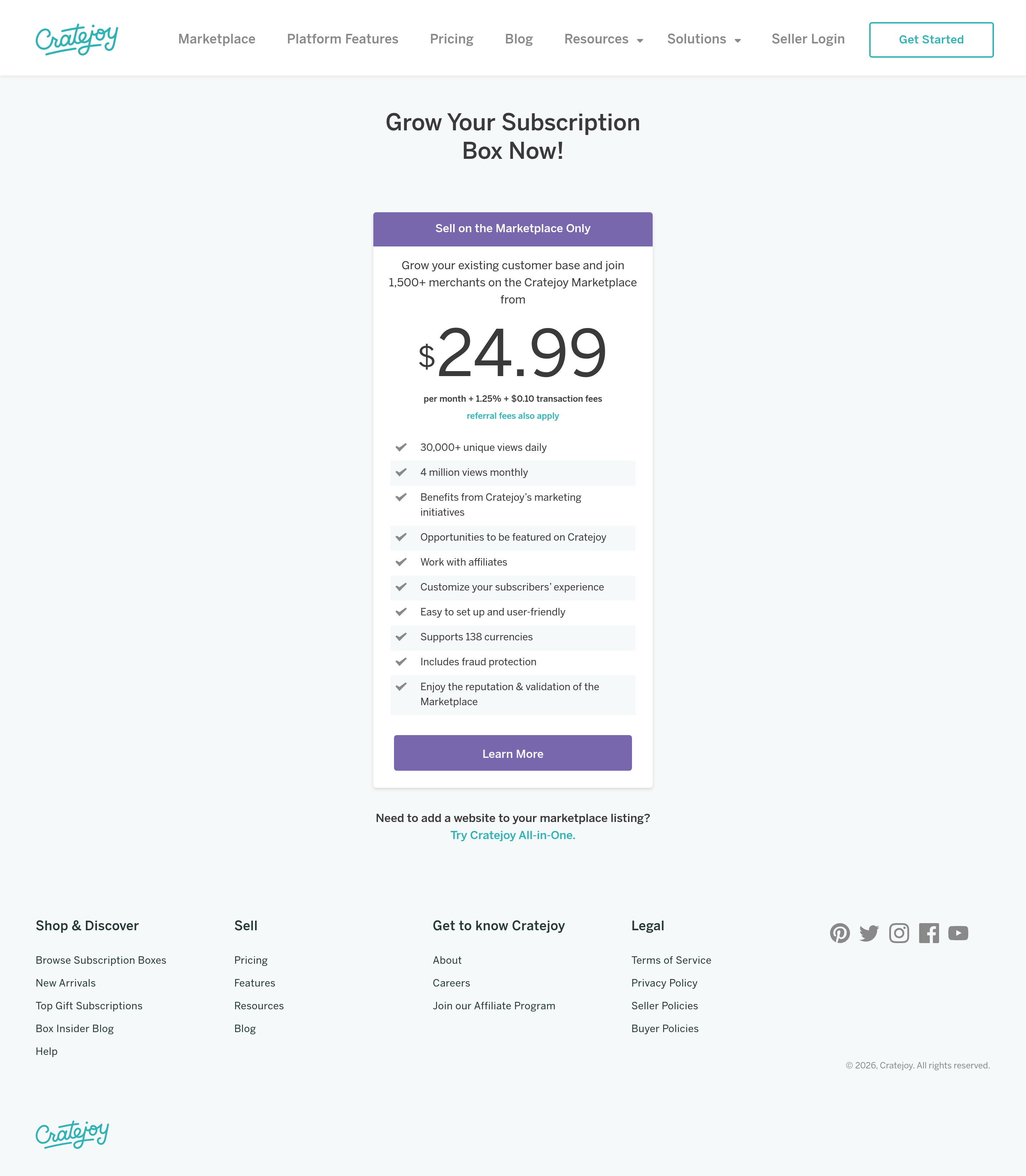 Cratejoy Pricing Page