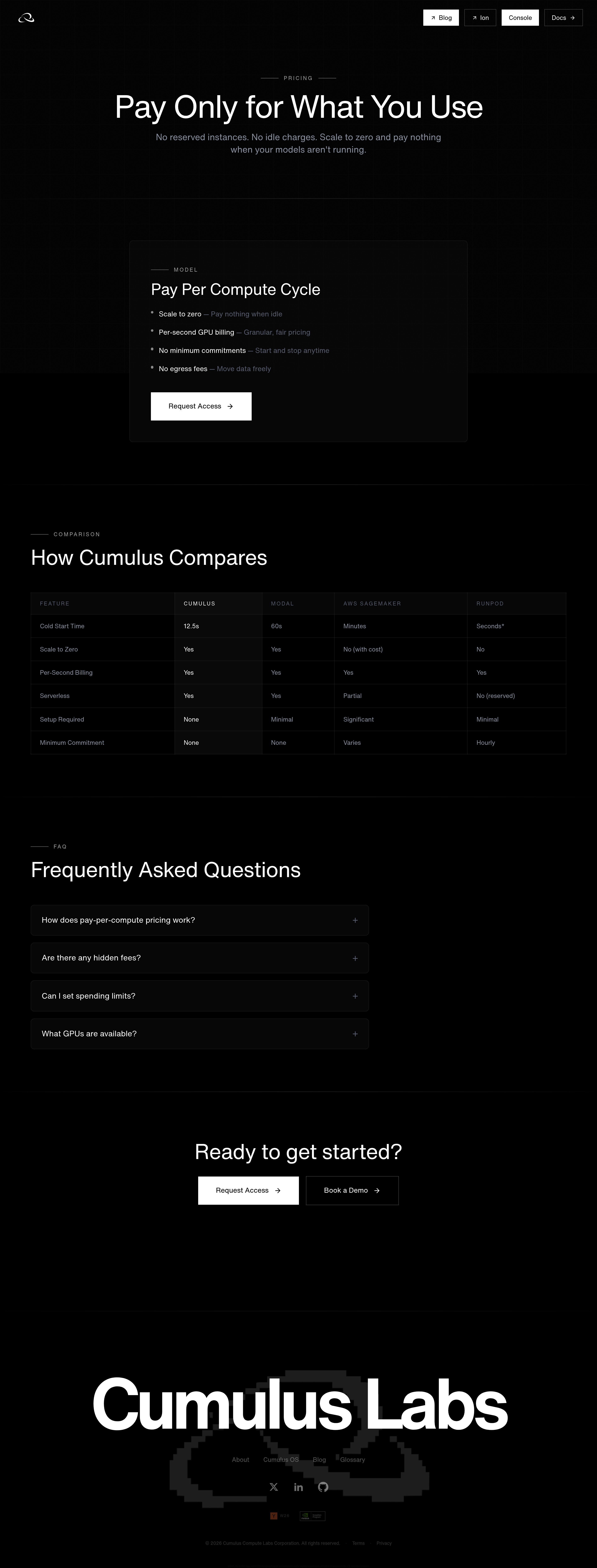 Cumulus Labs Pricing Page