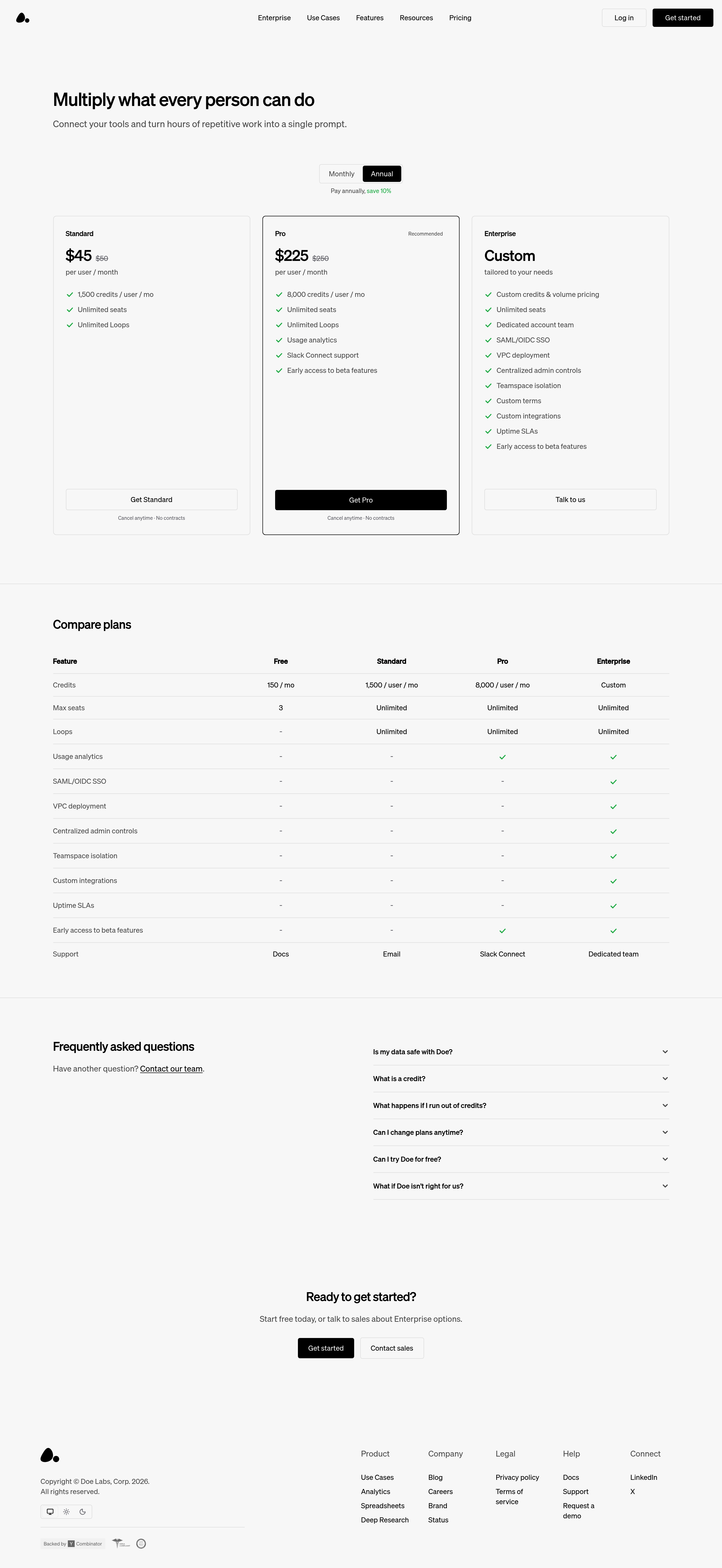 Doe Pricing Page