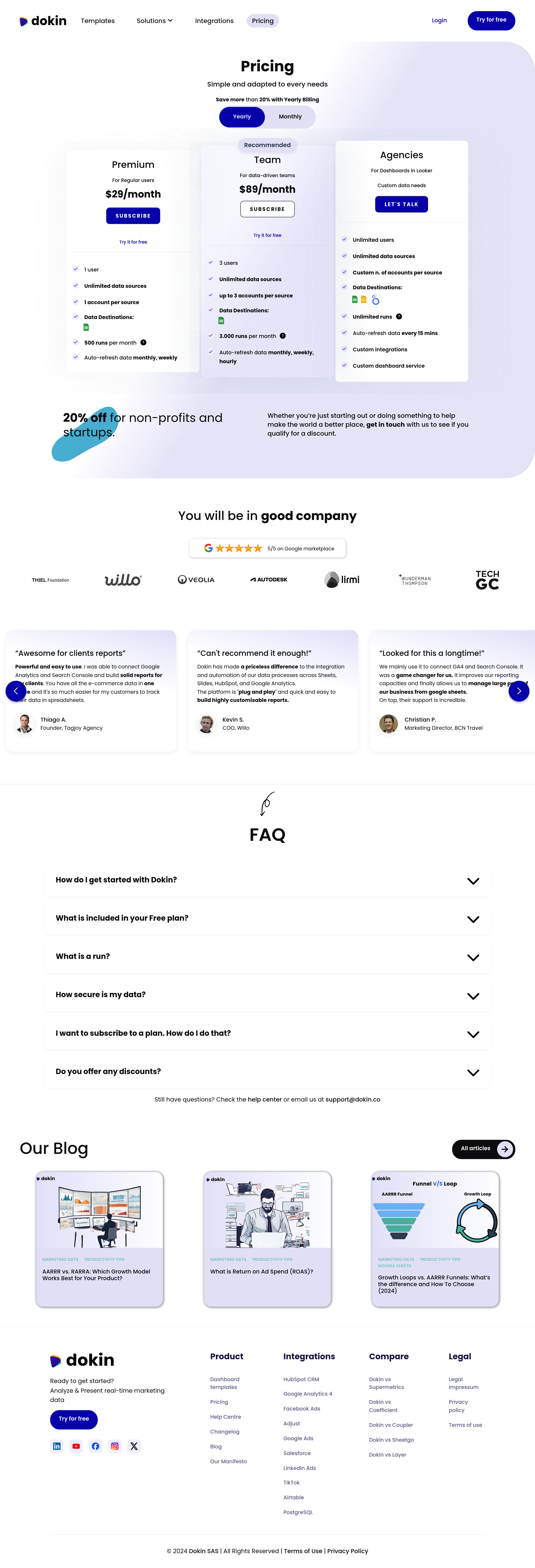 Dokin Pricing Page