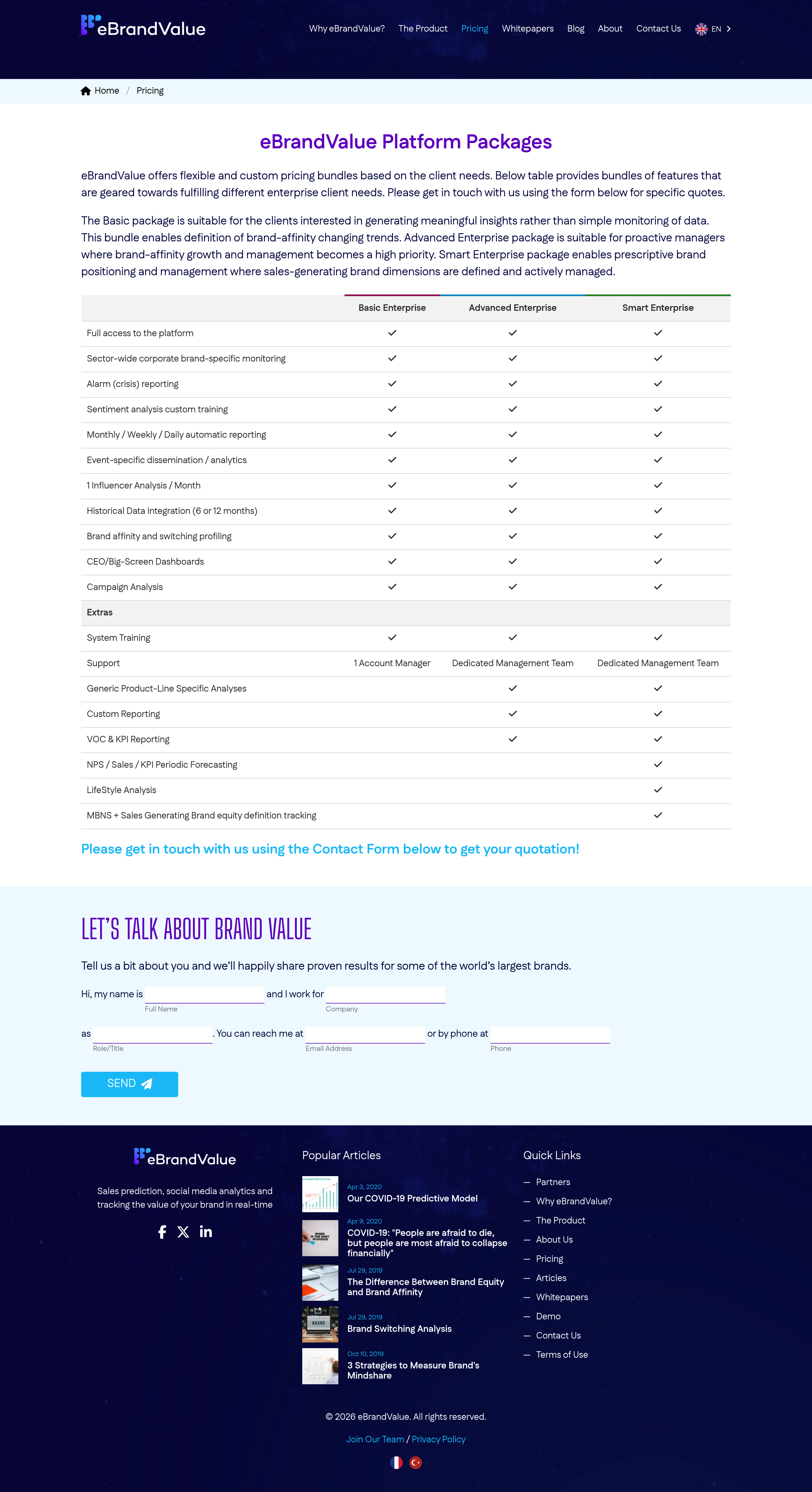 eBrandvalue Pricing Page