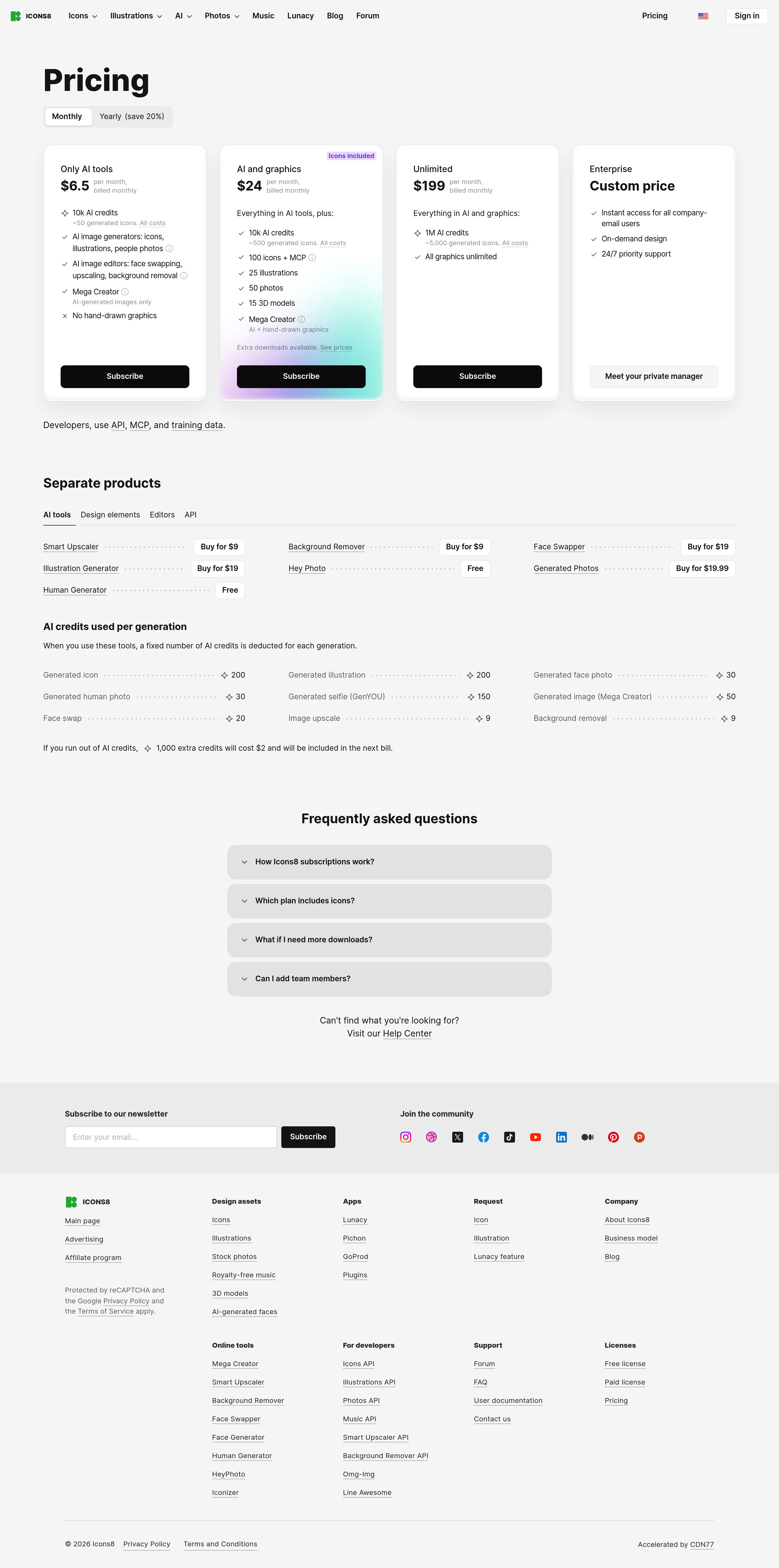 Illustration Generator by Icons8 Pricing Page