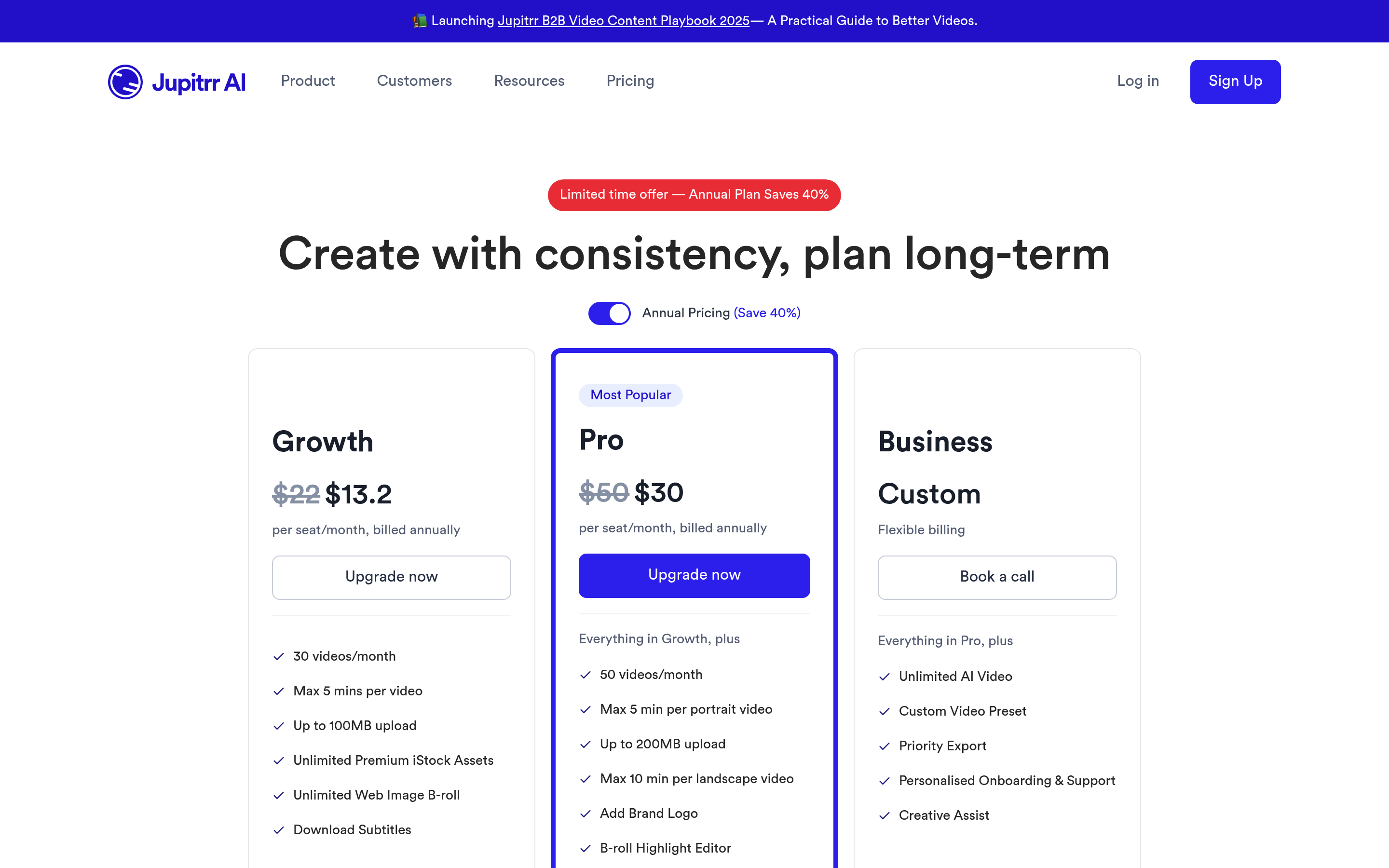 Jupitrr AI Video Maker Pricing Page