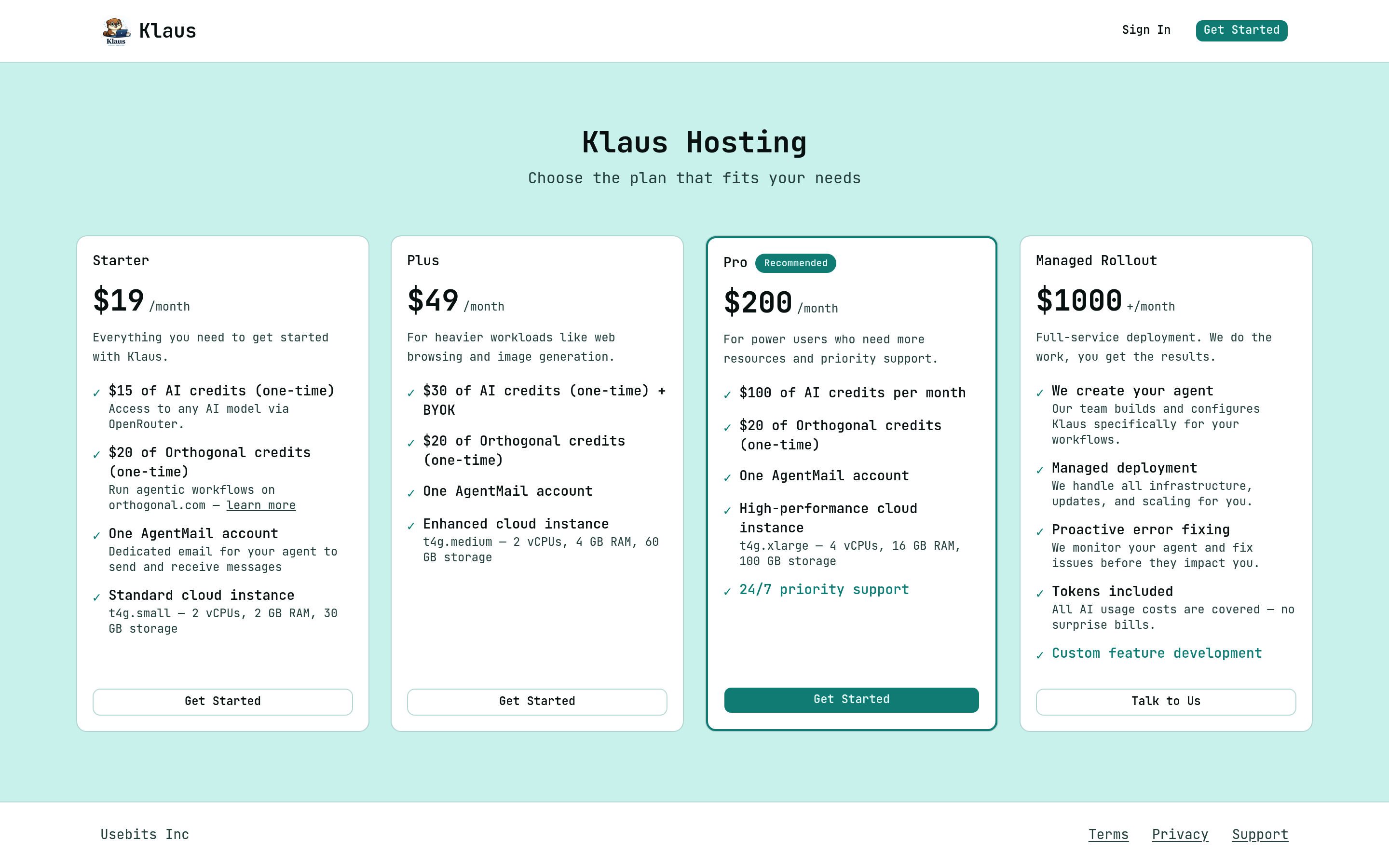 Klaus AI Pricing Page