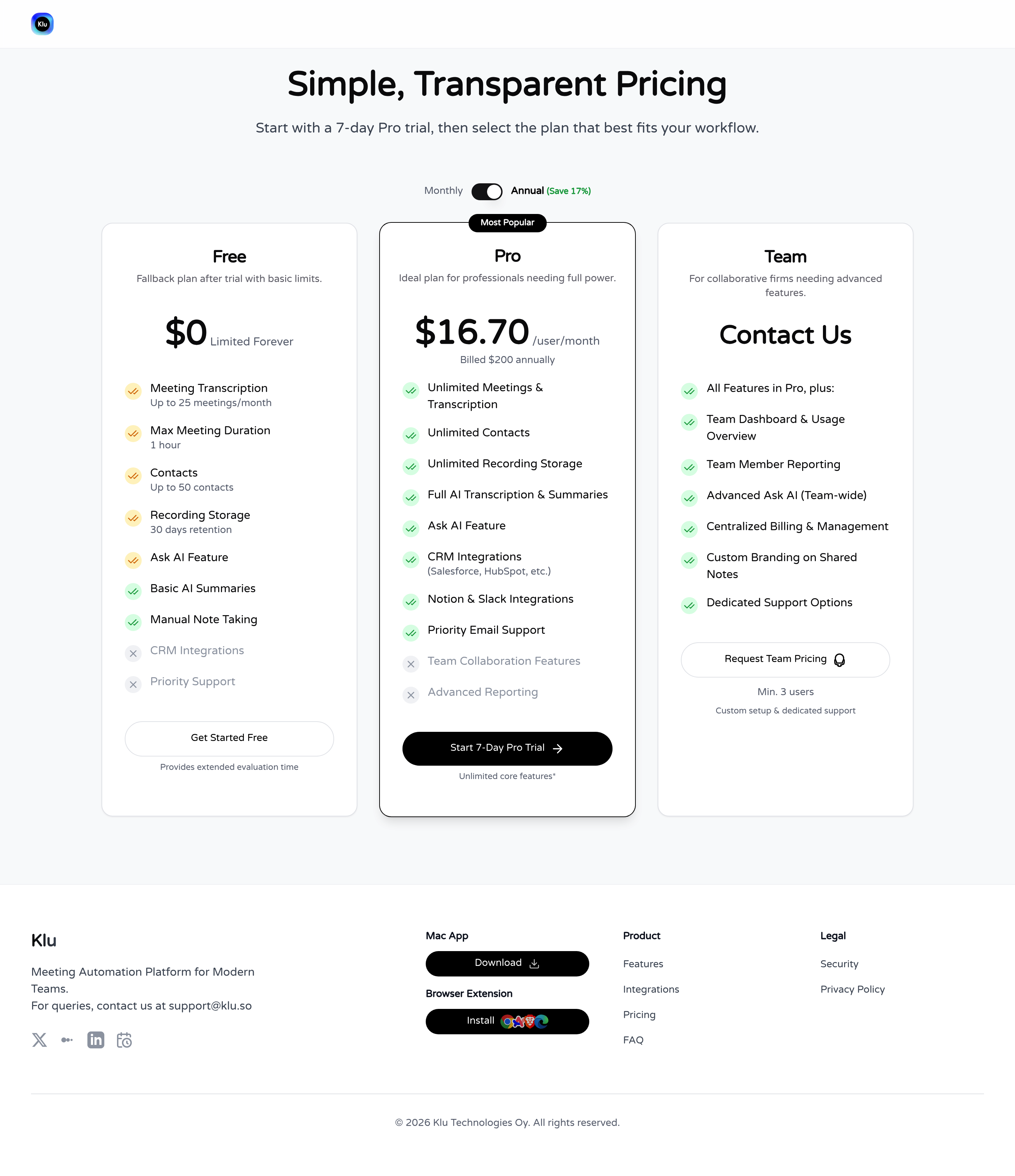 Klu AI Pricing Page