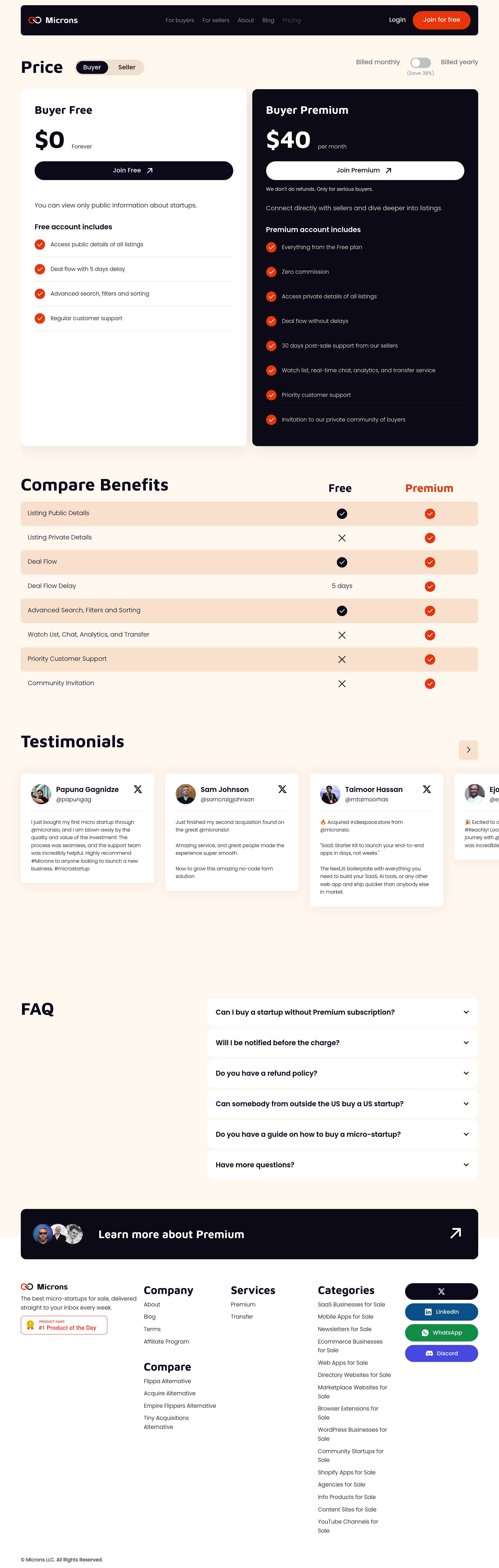 Microns v2 Pricing Page