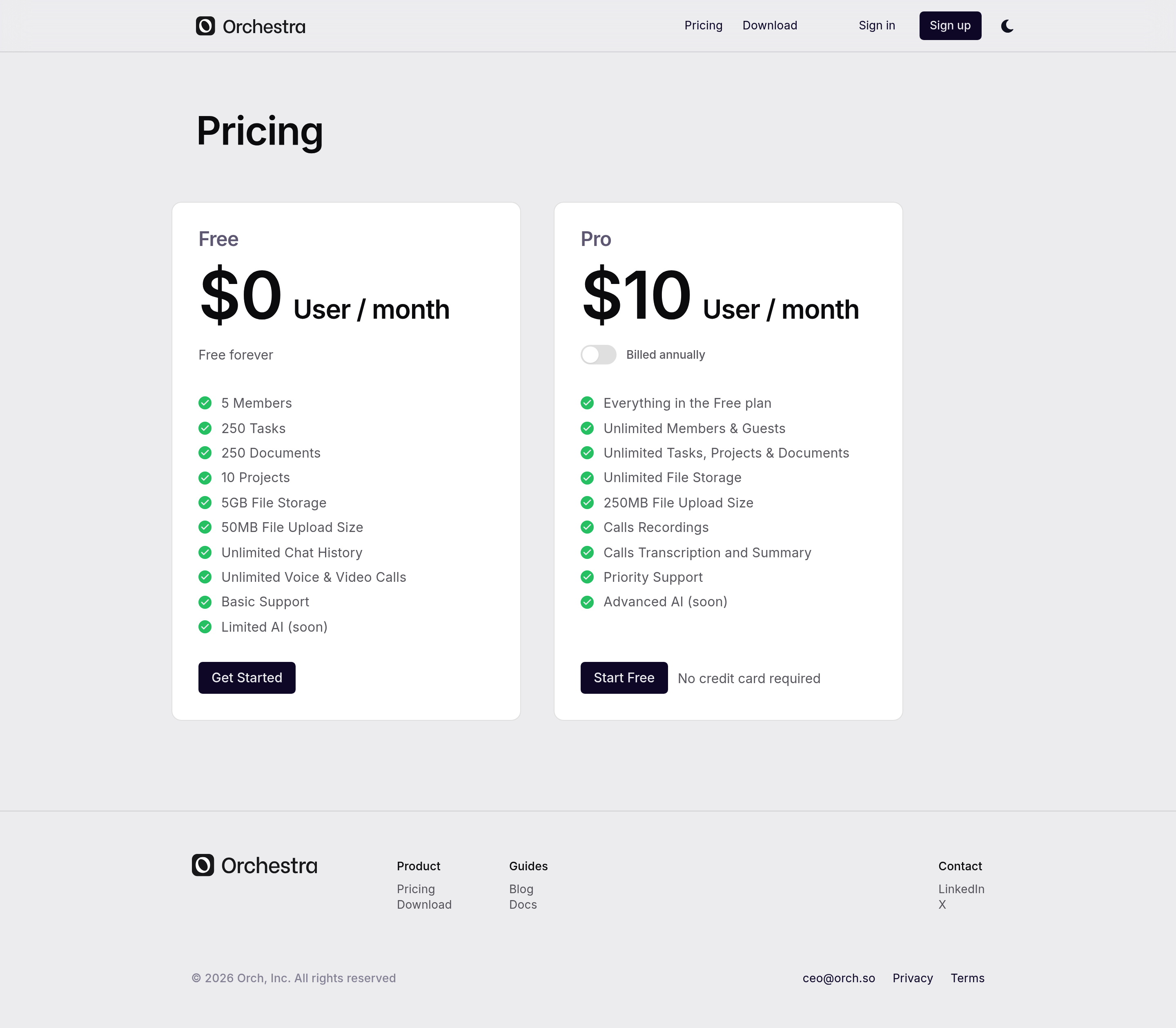 Orchestra Pricing Page