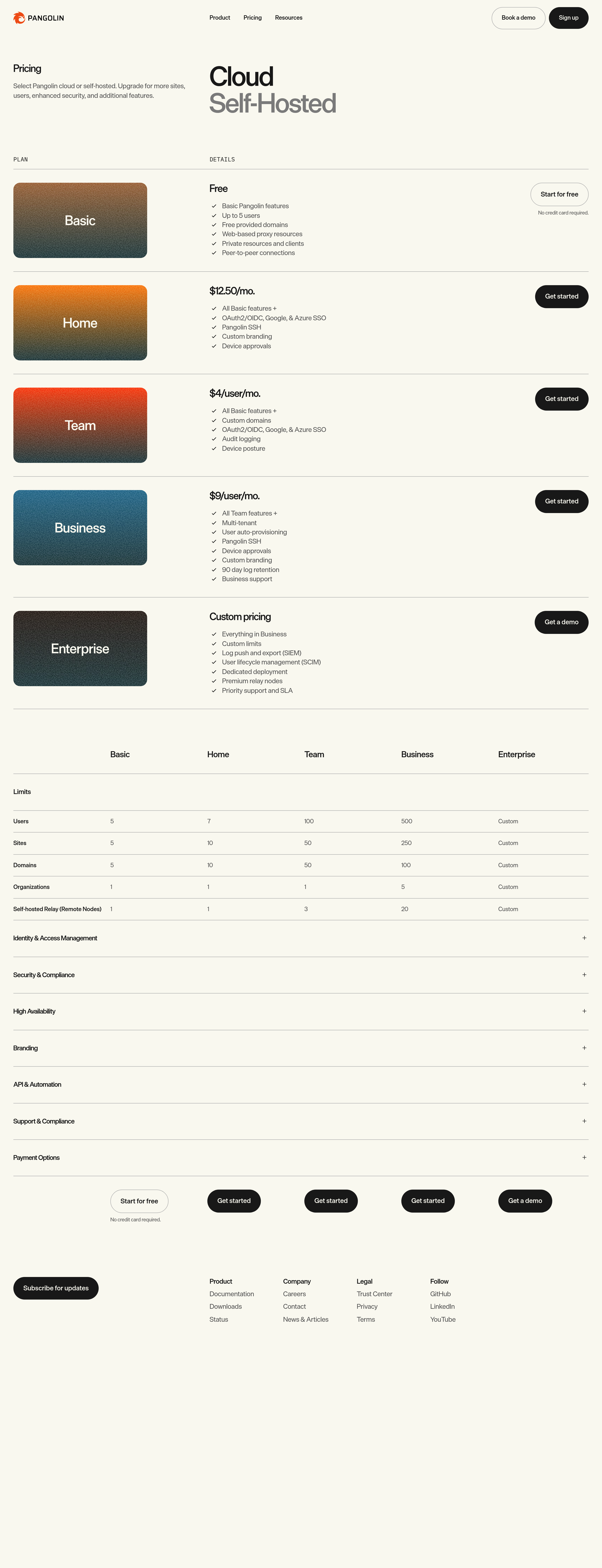 Pangolin Pricing Page