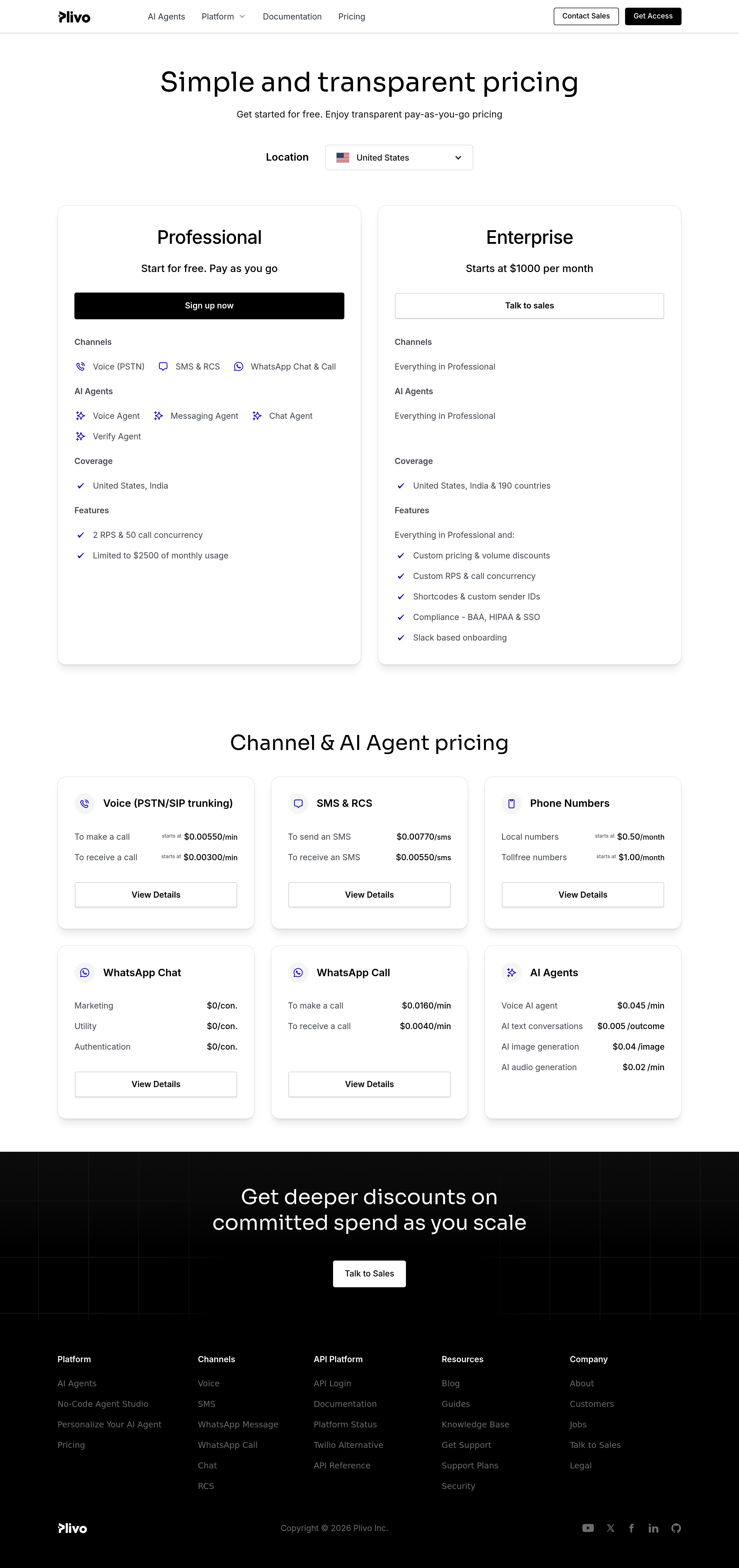 Plivo Pricing Page