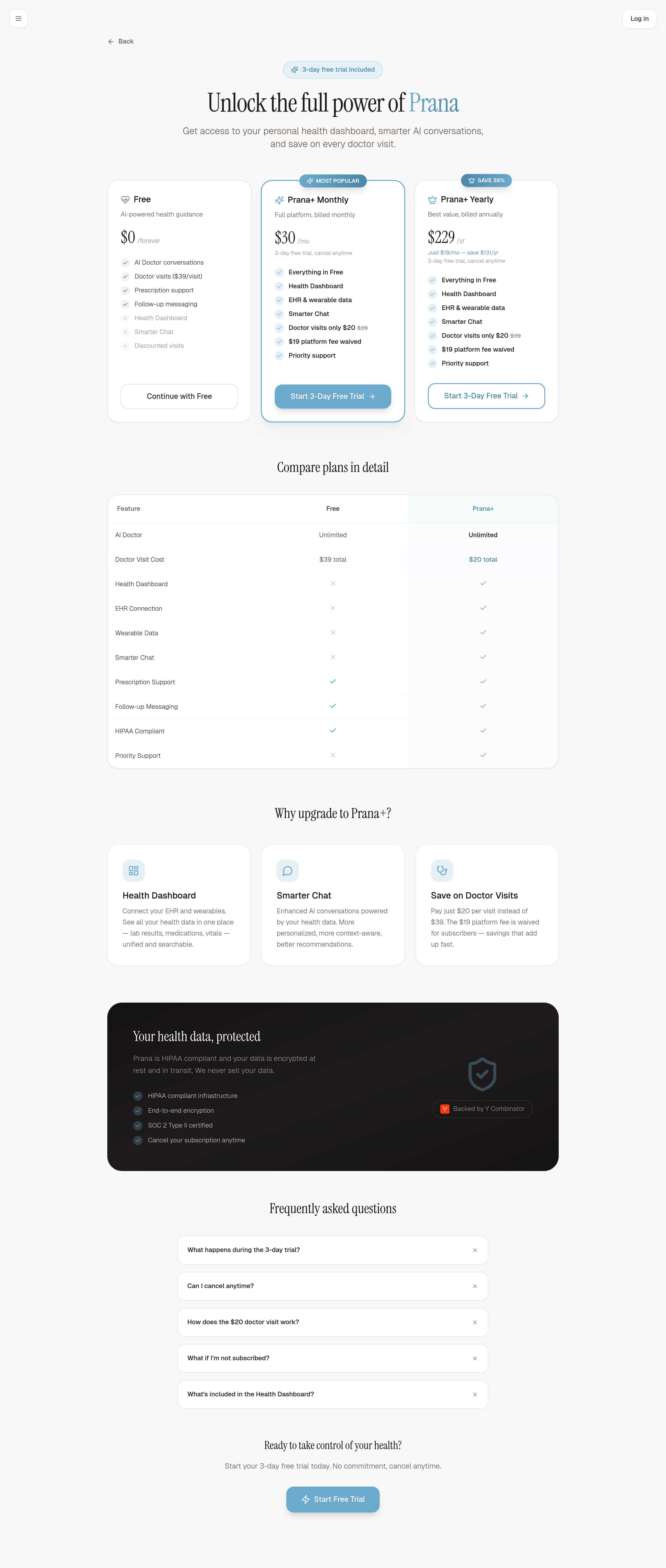 Prana Pricing Page