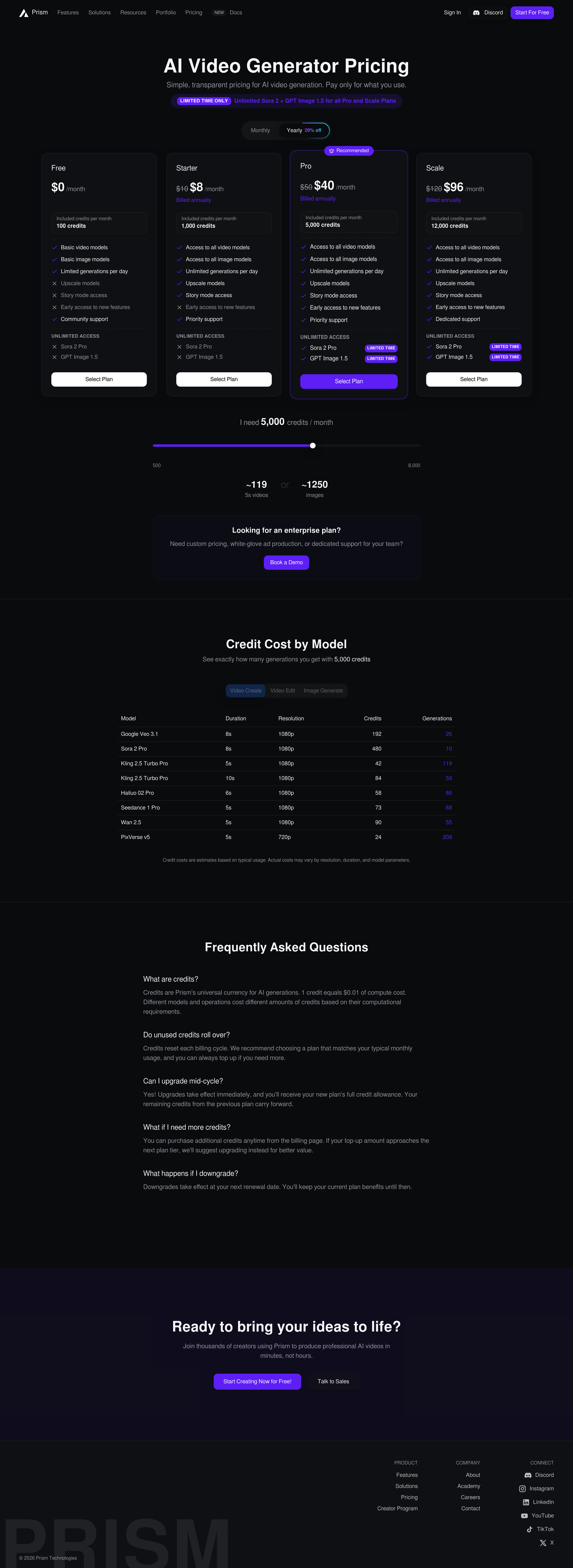 Prism Pricing Page