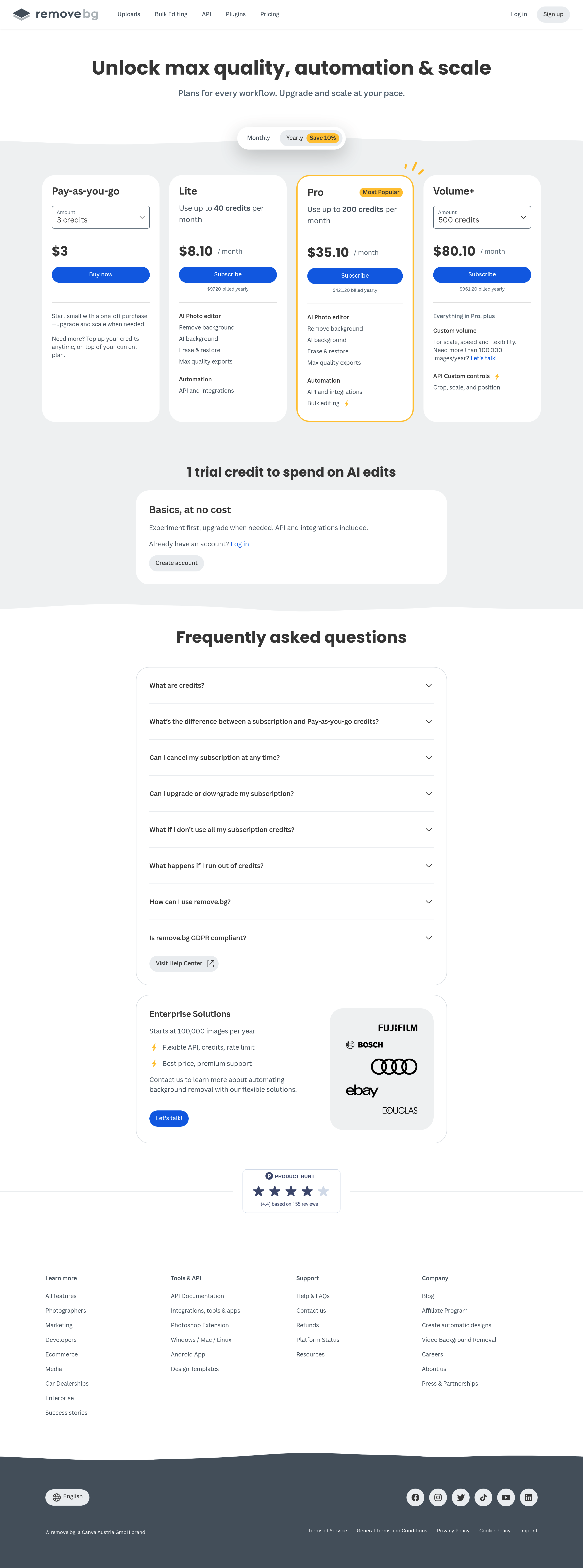 remove.bg Pricing Page