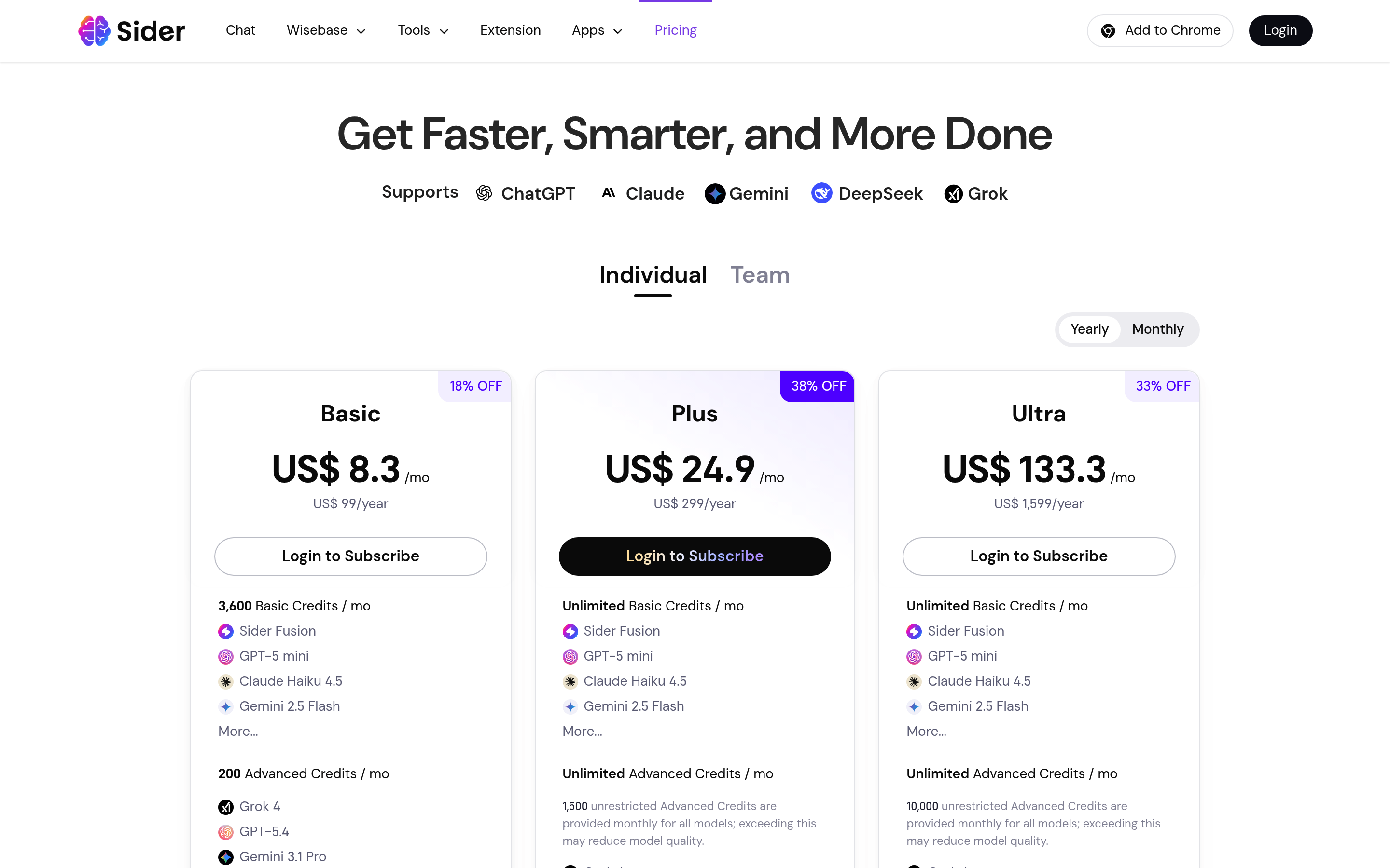 Sider 5.0: Deep Research with Wisebase Pricing Page