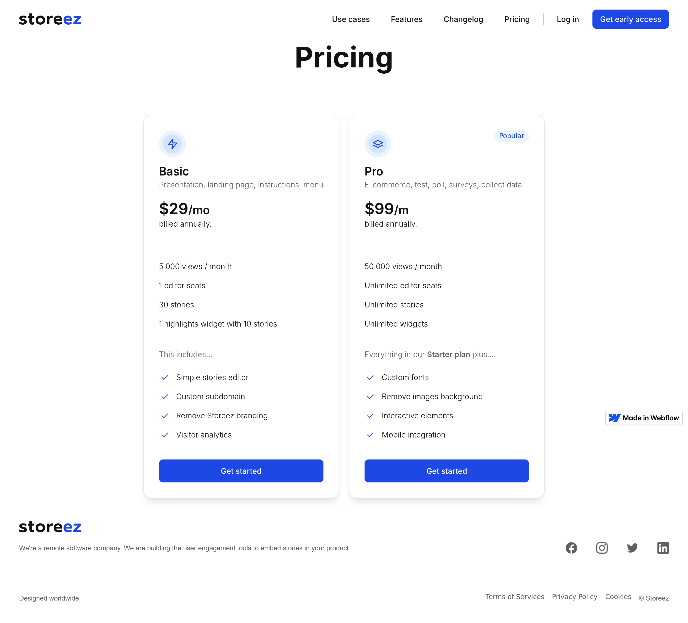 Storeez.app Pricing Page