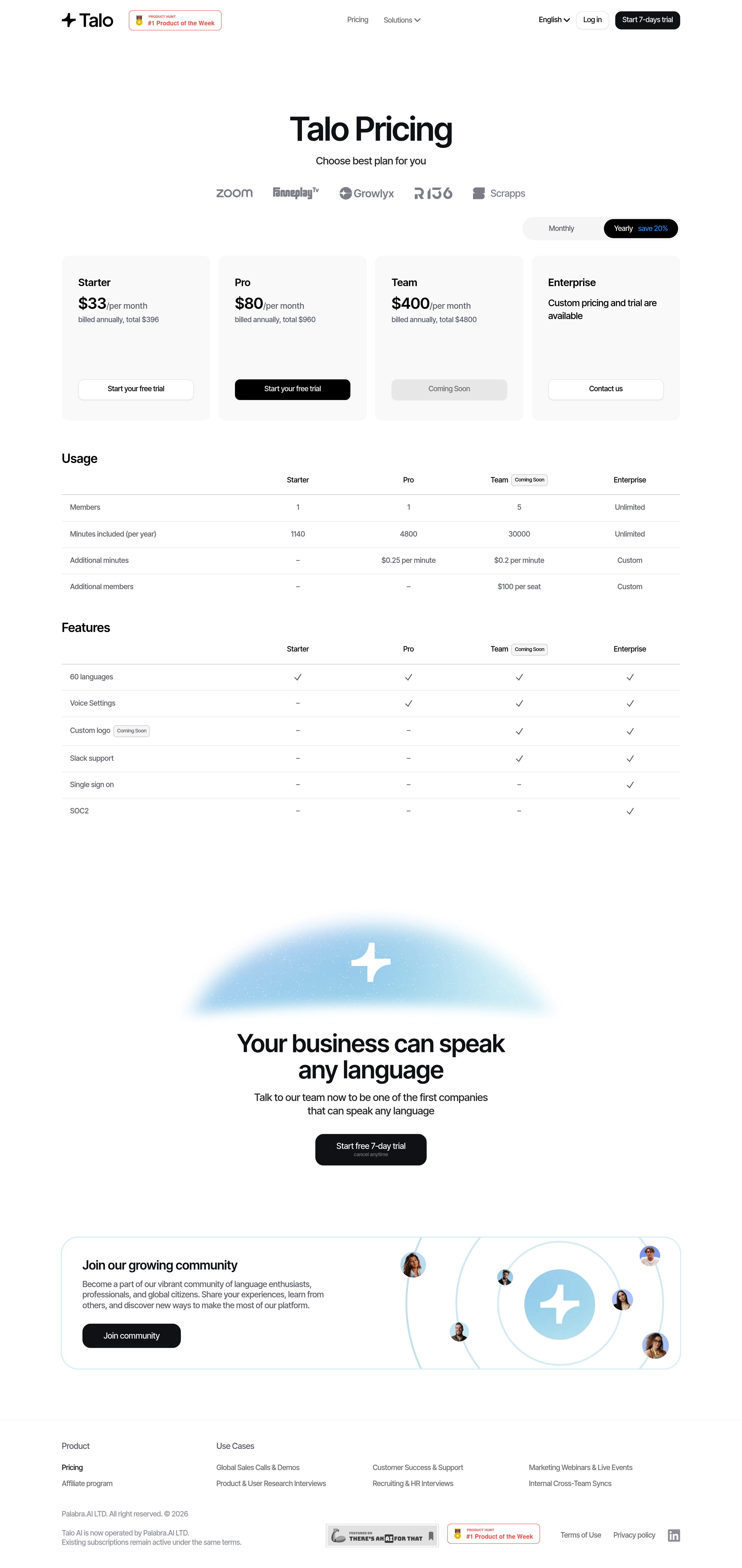 Talo Pricing Page
