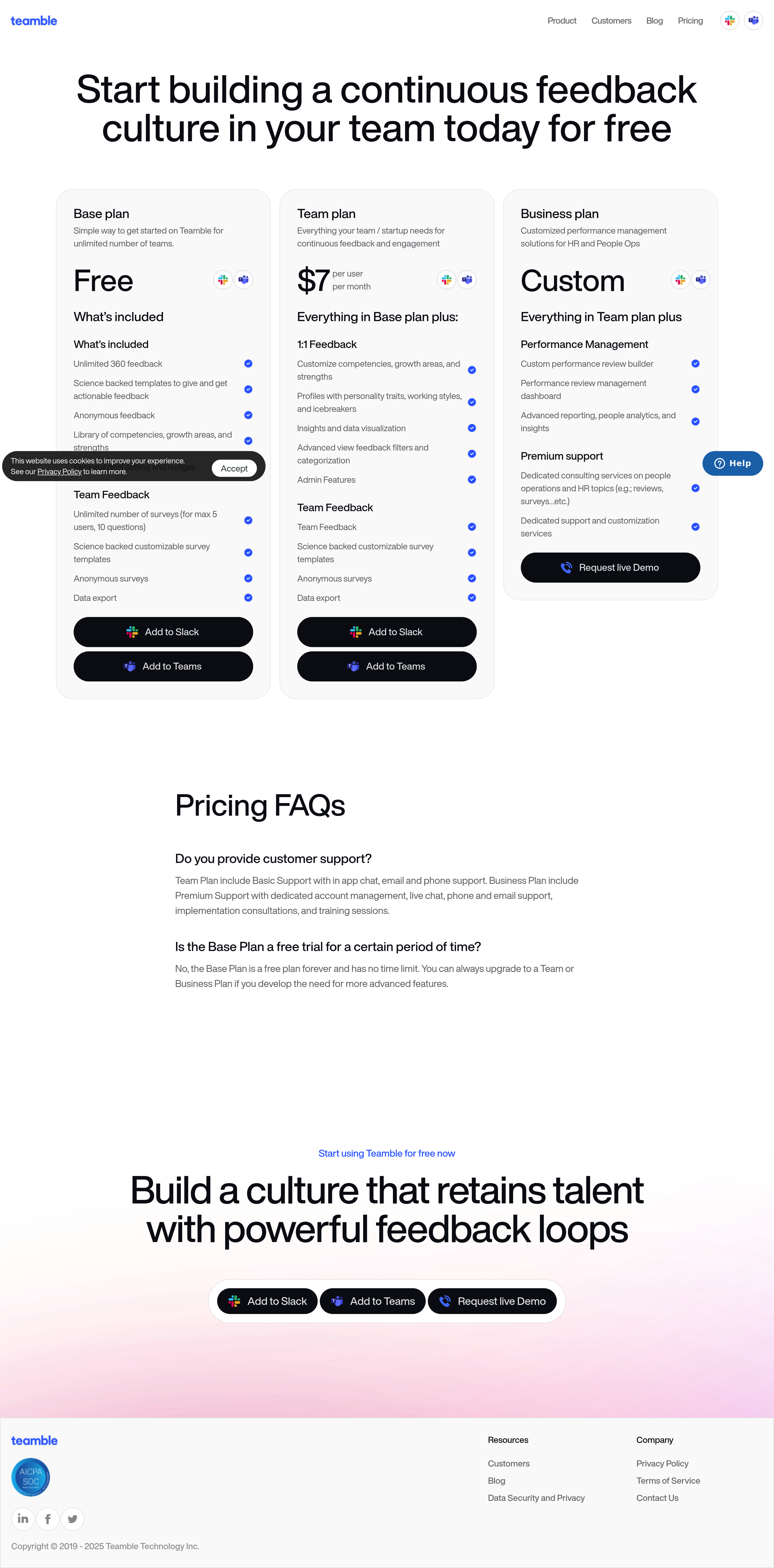 Teamble AI Pricing Page