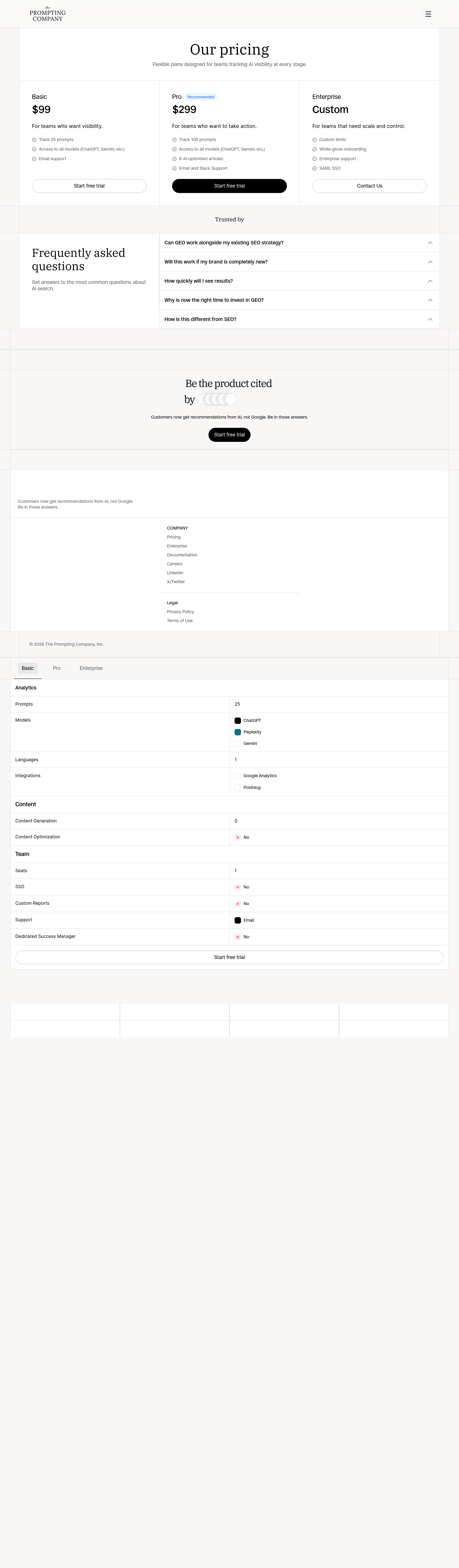 The Prompting Company Pricing Page