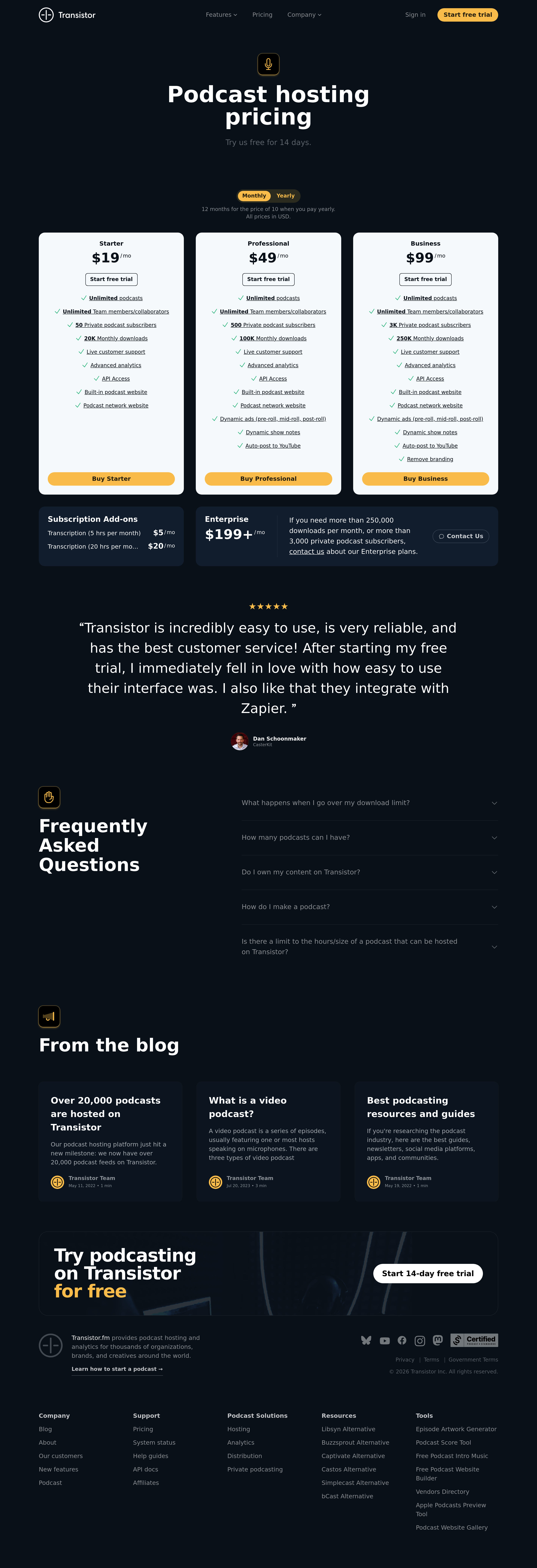 Transistor.fm Pricing Page