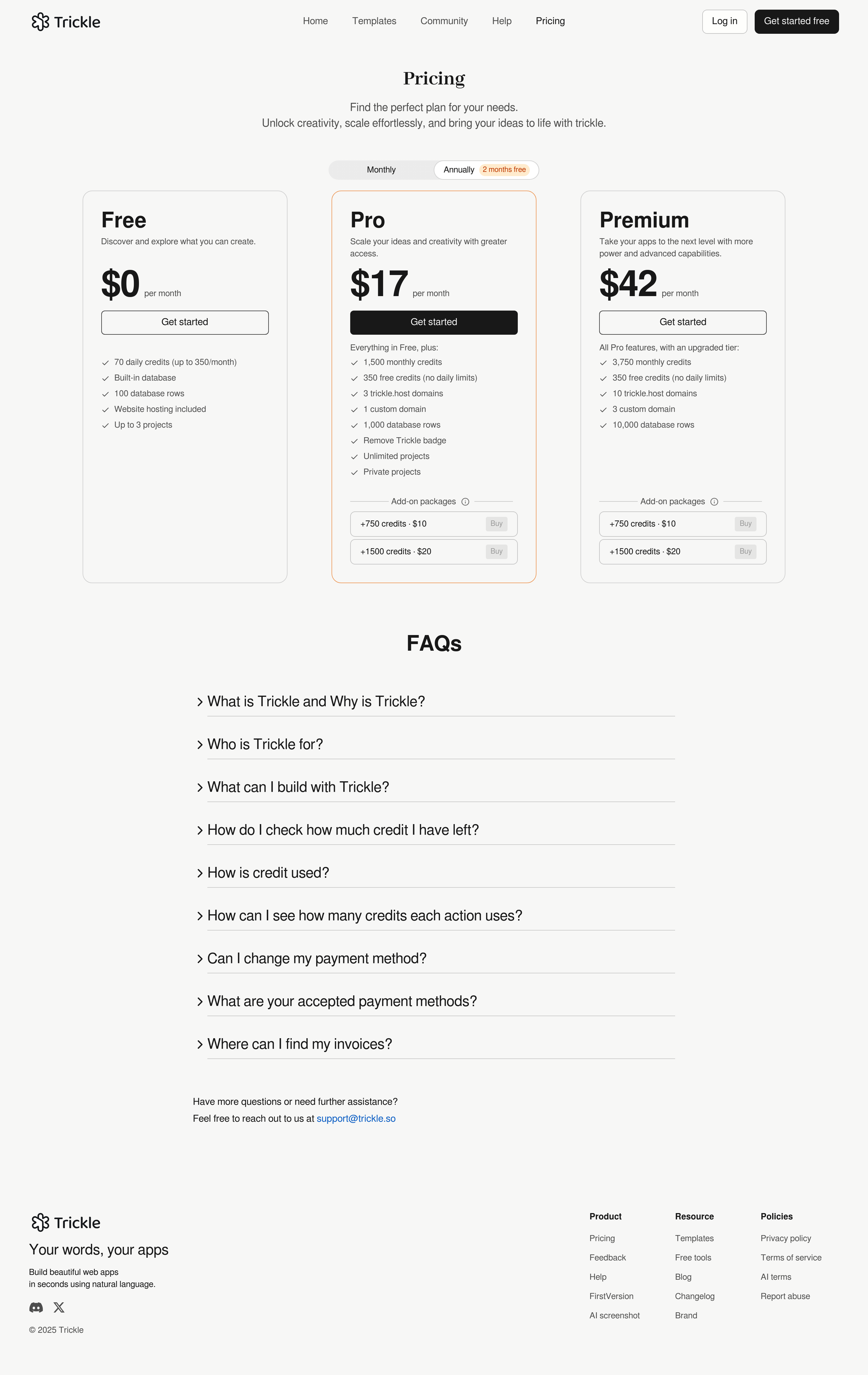Trickle Pricing Page
