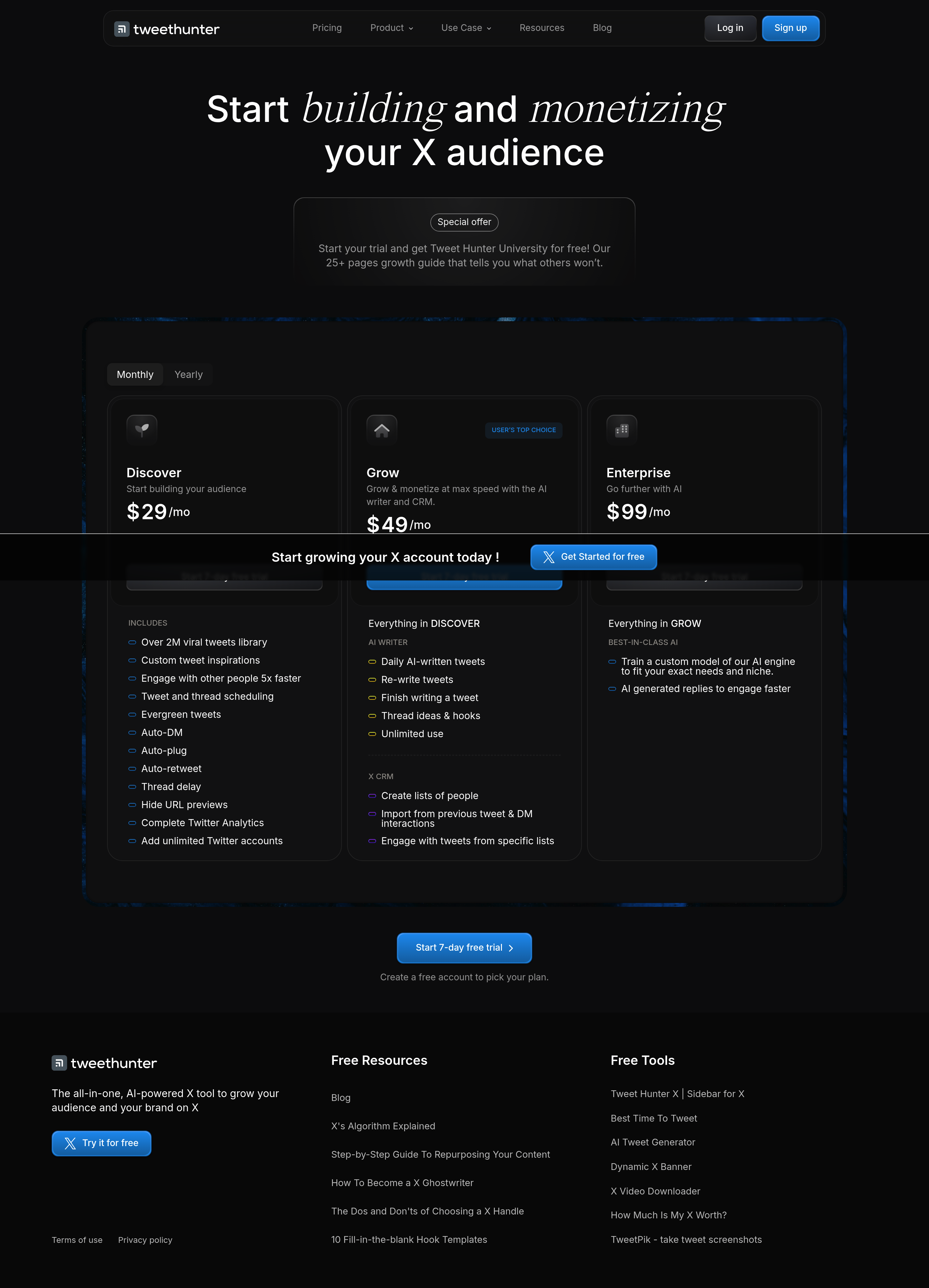 Tweet Hunter for Twitter Pricing Page