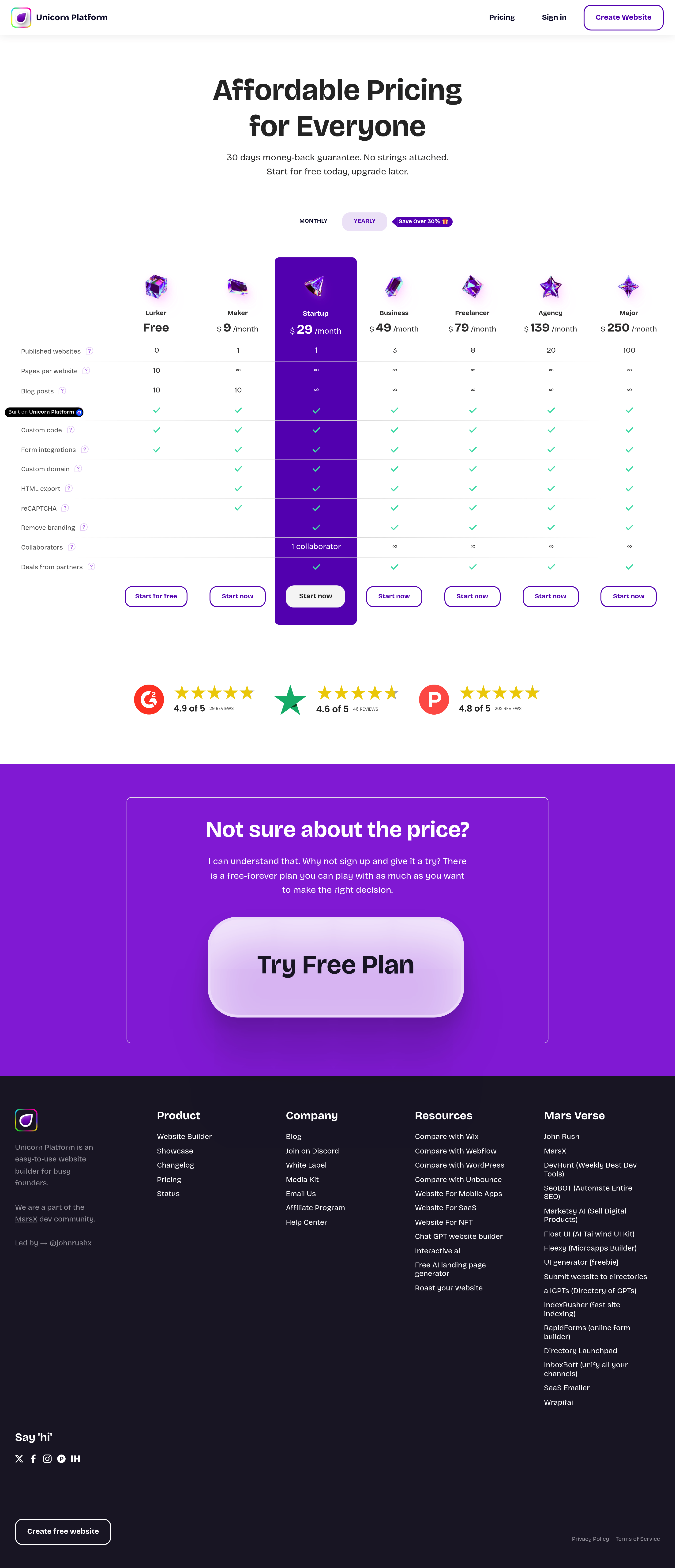 Unicorn Platform 🦄 Pricing Page