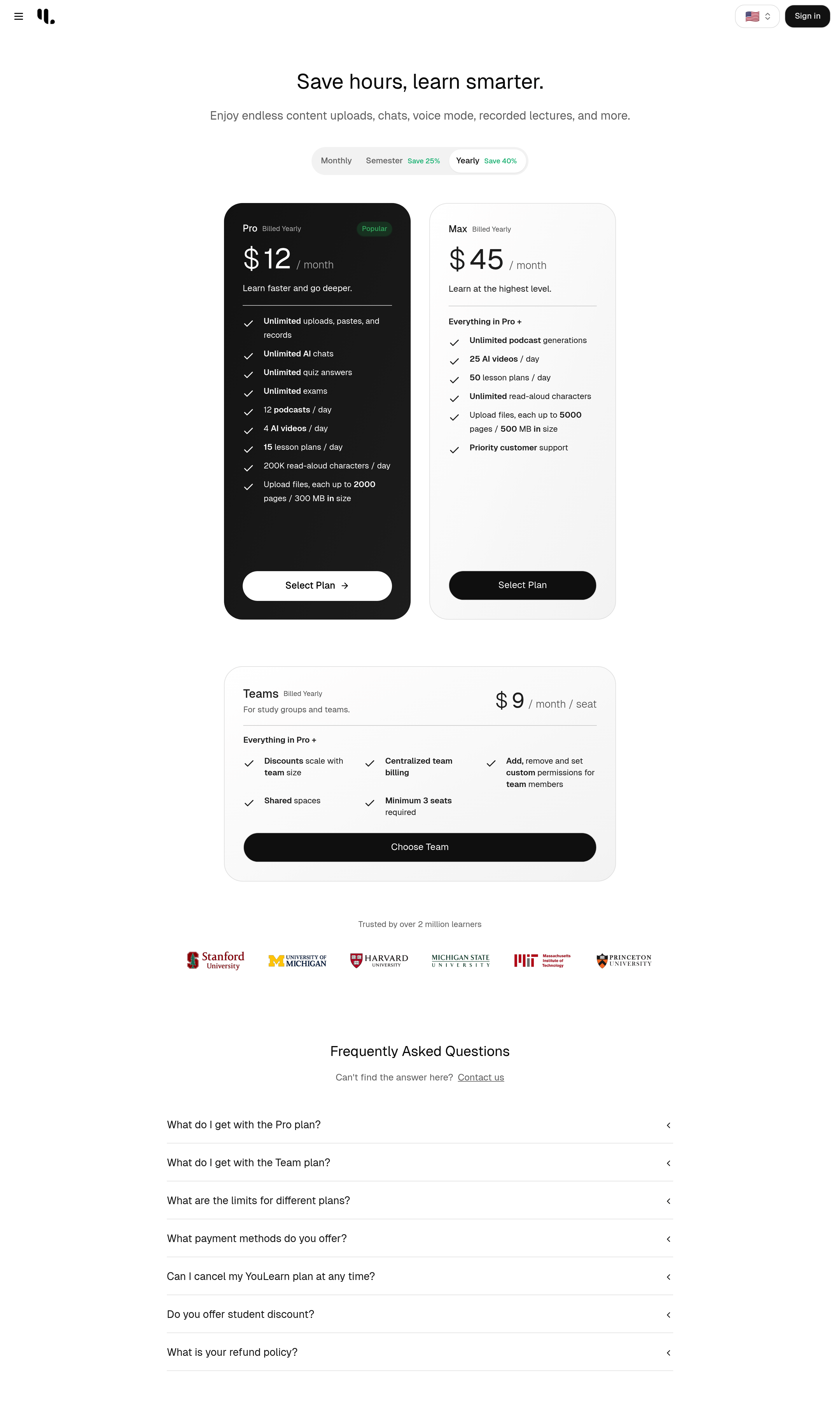 YouLearn Pricing Page