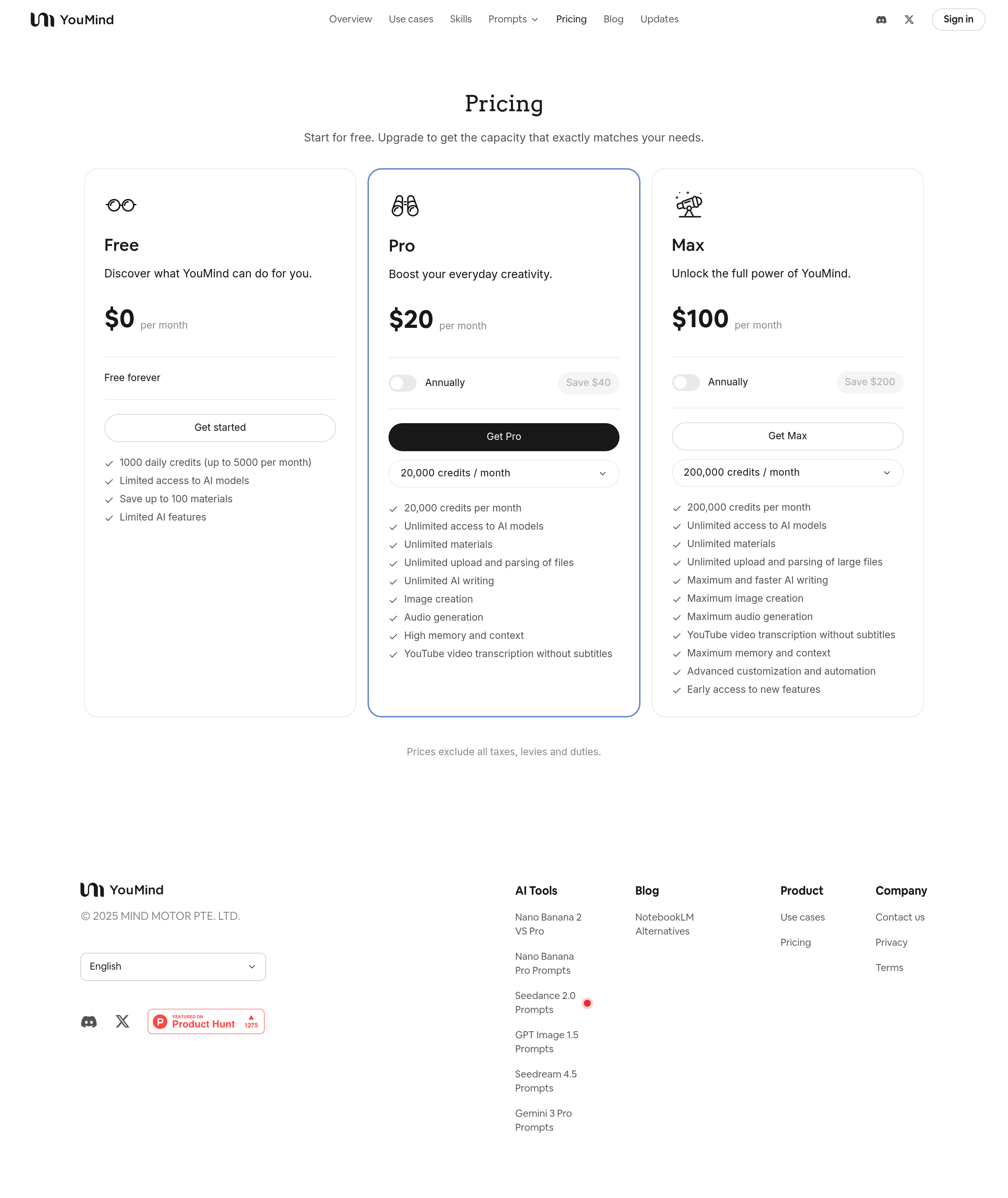 YouMind Pricing Page