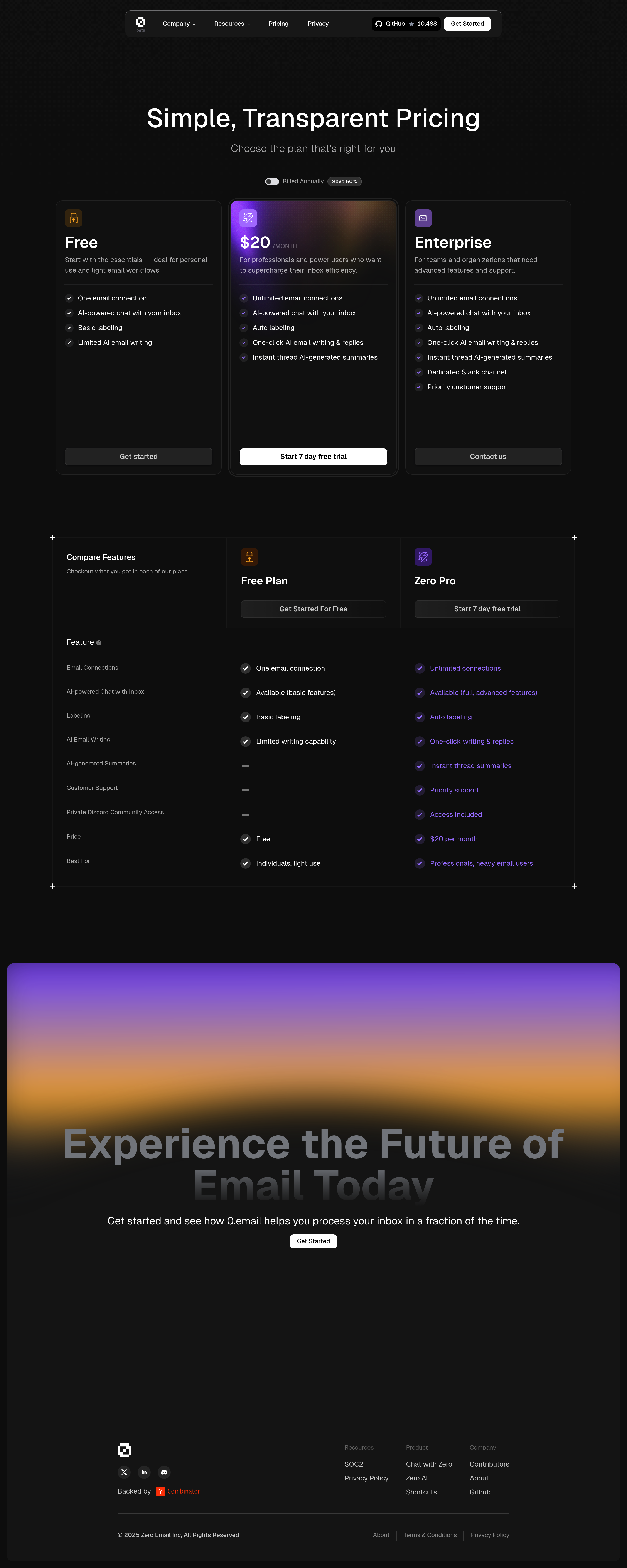 Zero Pricing Page